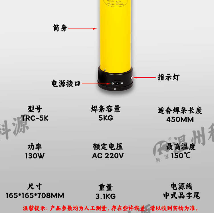 電気溶接棒保温筒のTRC-5Kの温度は150 ℃ です。