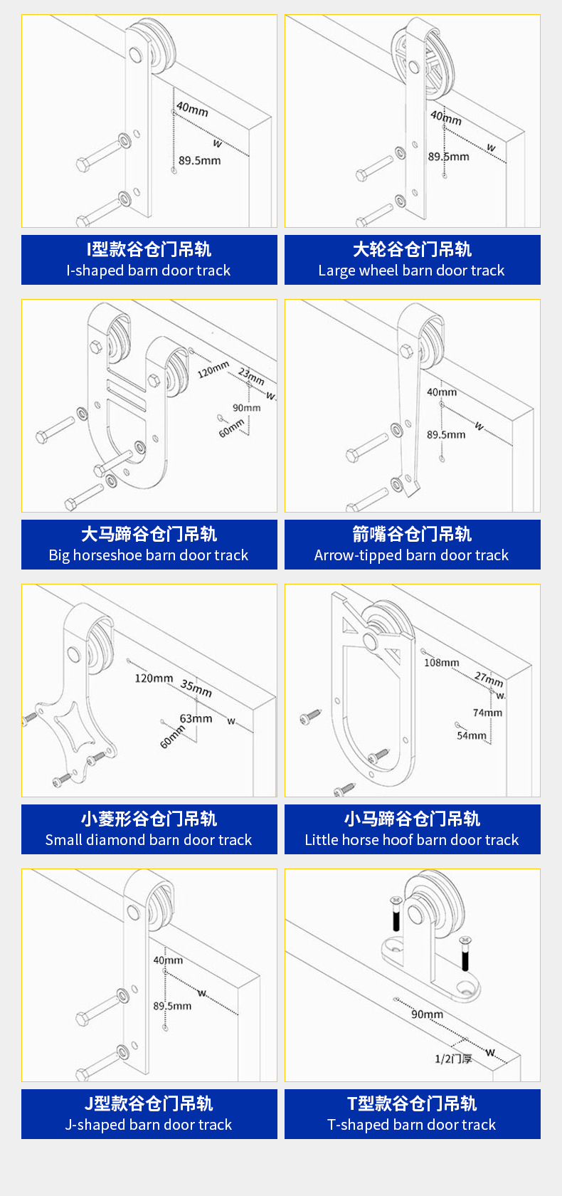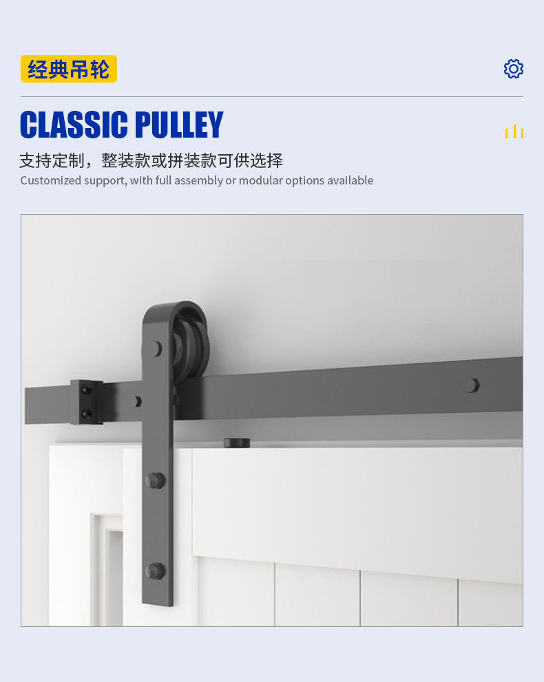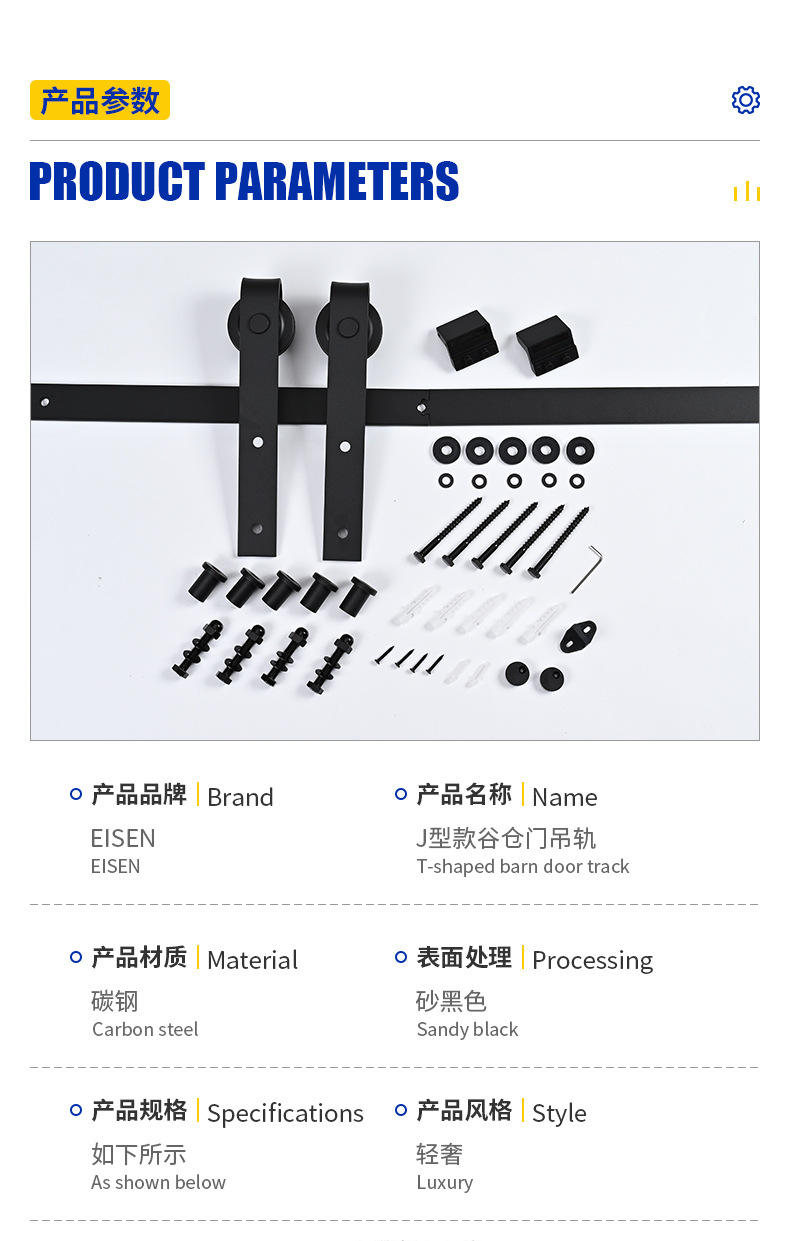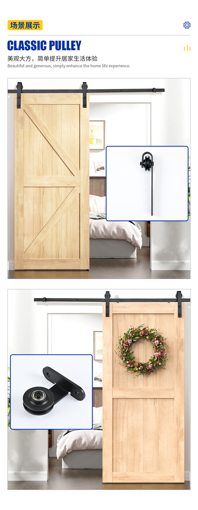 アメリカ式納屋戸吊りレールJ型クラシックトラック一式引き戸スライドレール移動式ドア滑車付属品工場直営