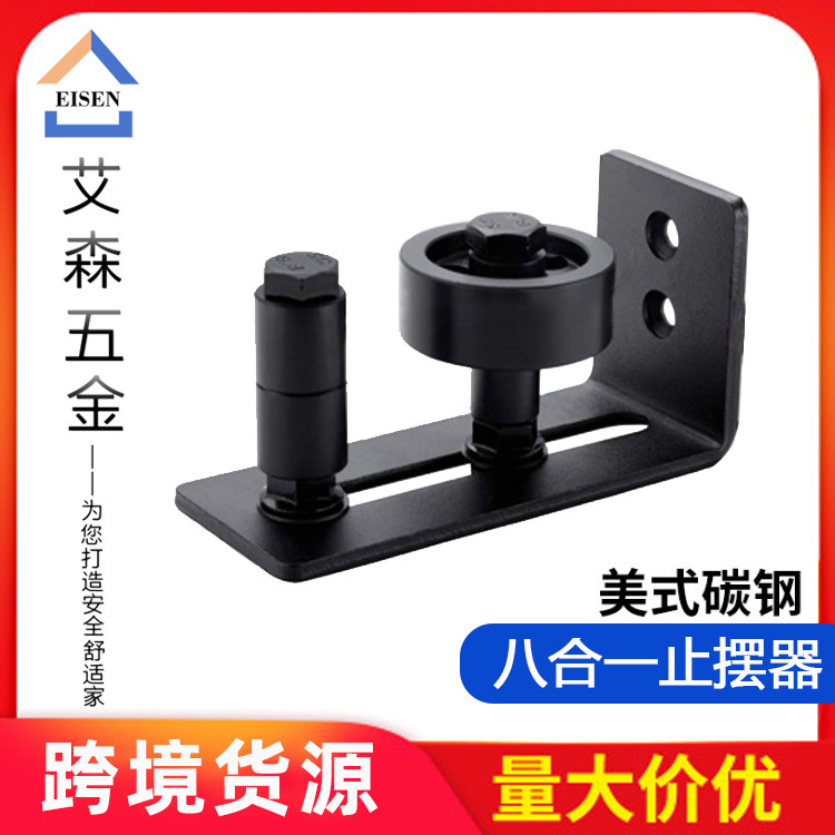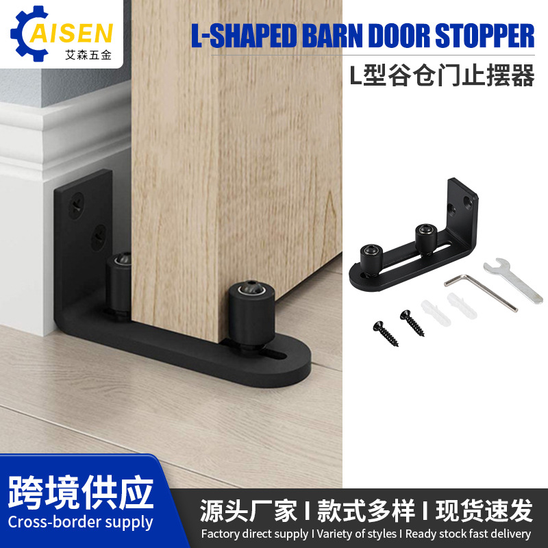 納屋ドアストップ、平底フロアレール、黒、8種類の変形組み合わせ、越境供給、卸売、アメリカンスタイル