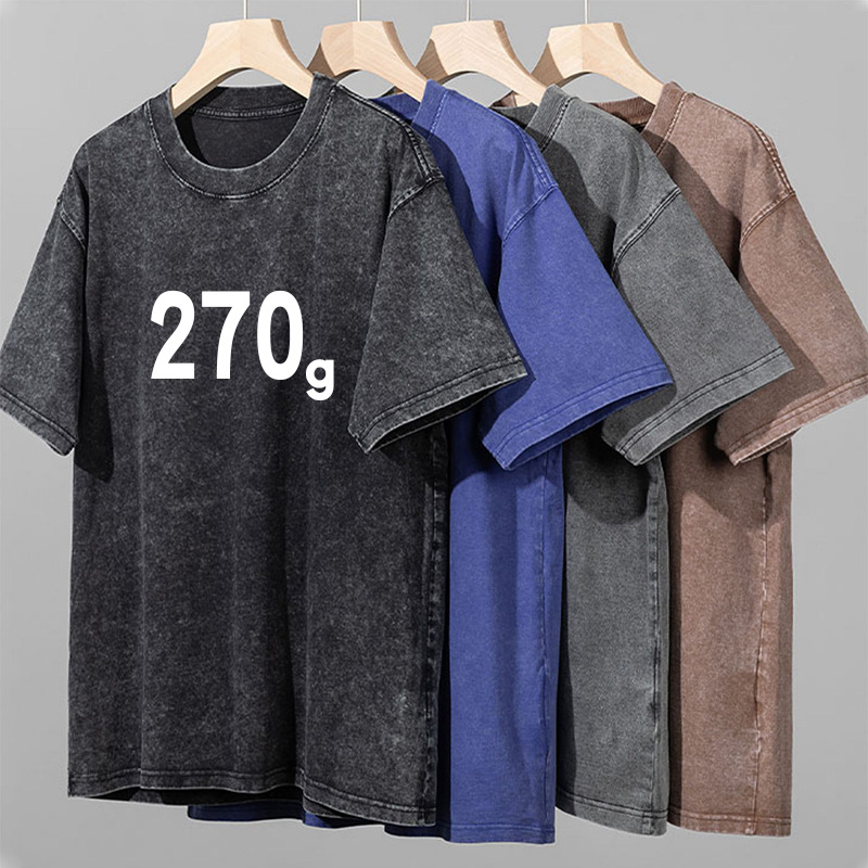クロスボーダースタイル280gヴィンテージウォッシュ加工ダメージ加工トレンドブランド半袖Tシャツメンズゆったり欧風オーバーサイズ純綿T