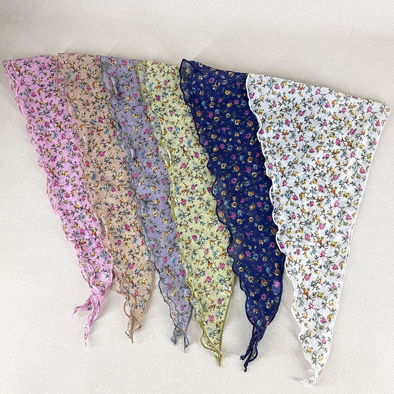 韓系春夏の薄い曲の歯の波点のシルクタオルの女性の雰囲気感の三角のスカーフの流行の装飾のスカーフの多機能