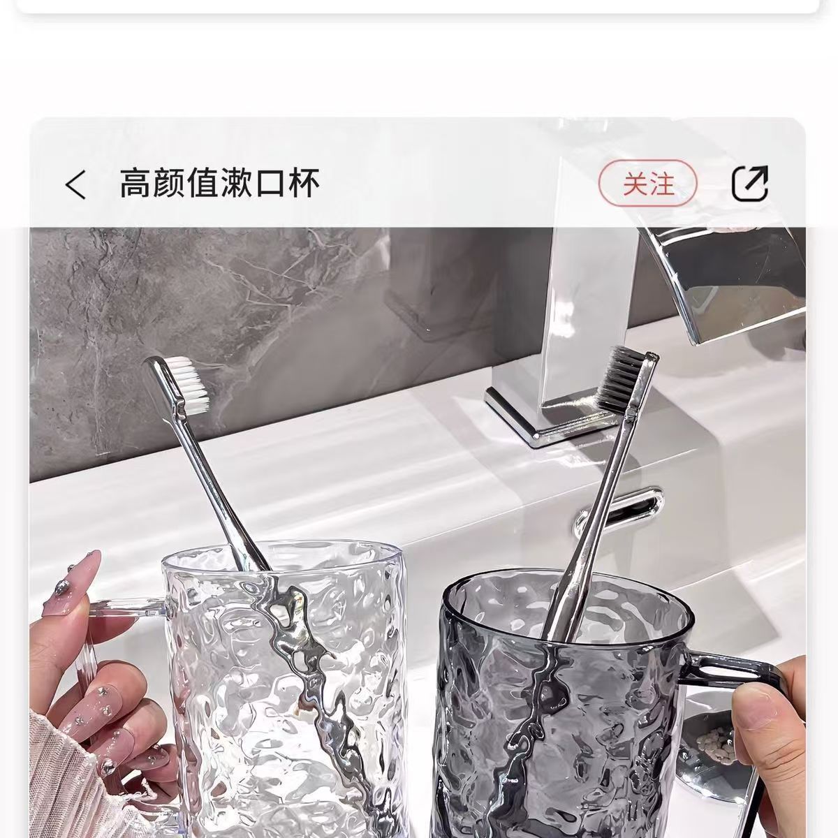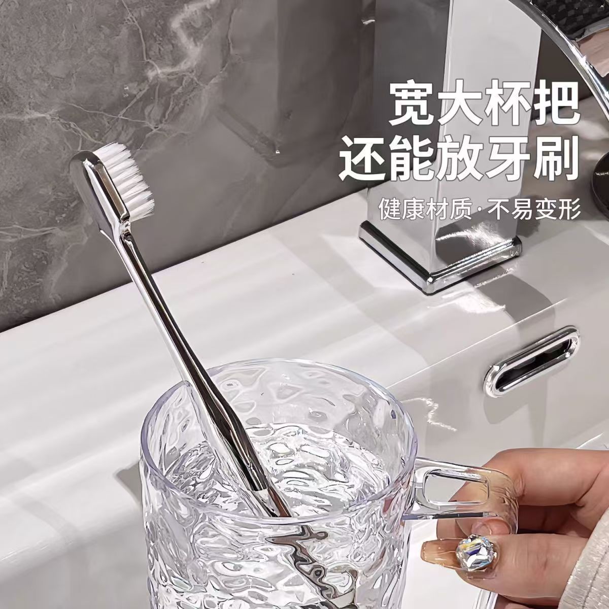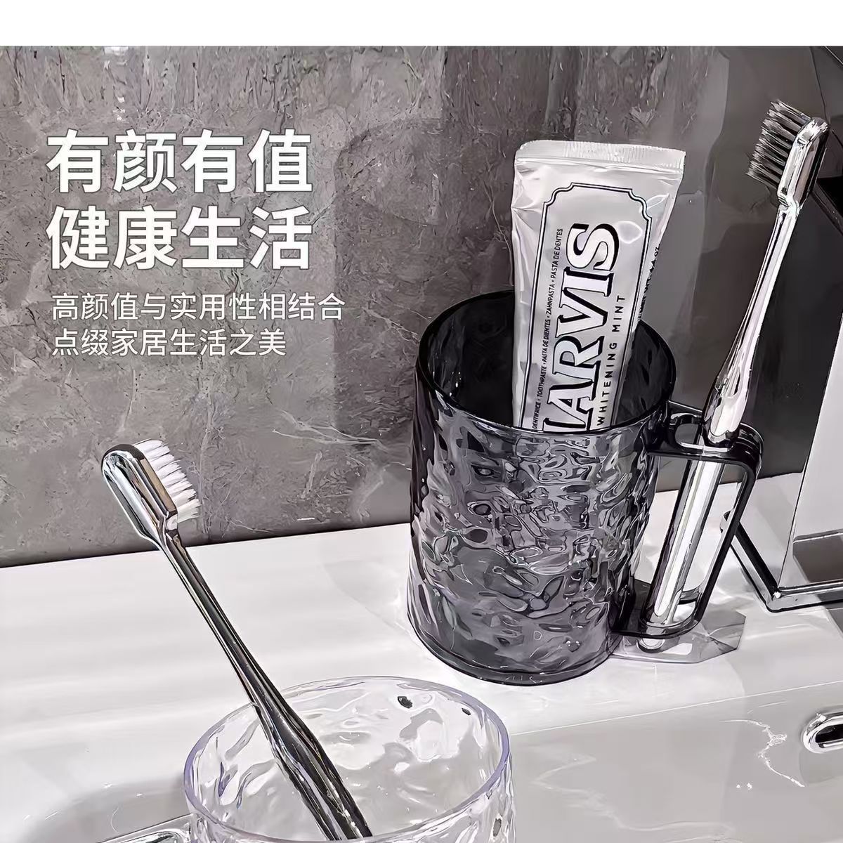 氷河紋高颜値プラスチックカップ取っ手付き学生寮歯ブラシカップ家庭用透明嗽カップカップルカップ