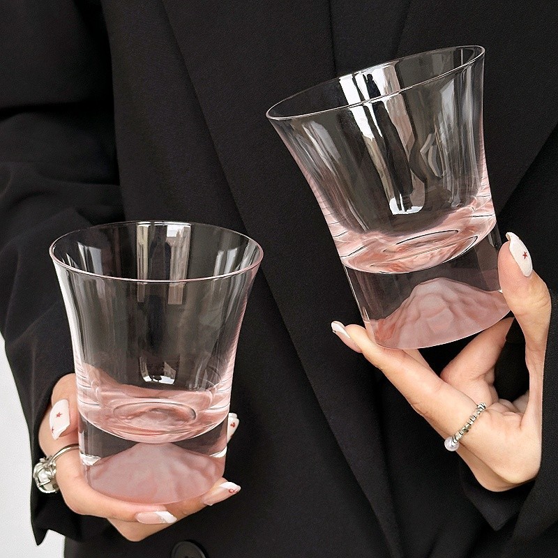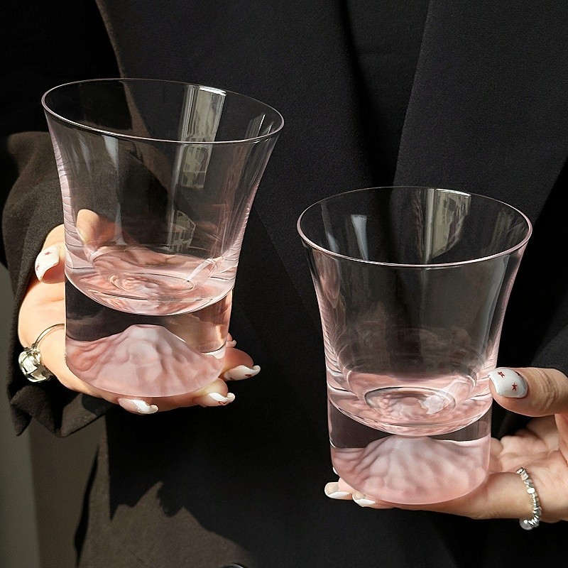 ~富士山杯粉色山脉观山杯咖啡玻璃杯威士忌酒杯洋酒杯 敲好看 集美们 推荐入手~