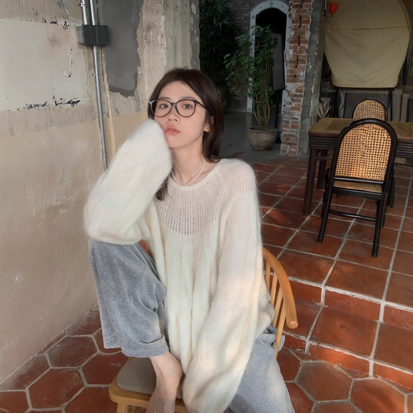 ミンクベルベットタートルネックホワイトセーター女性用ルーズモヘアニットセーター2021秋冬厚手トップスゆったりスタイル