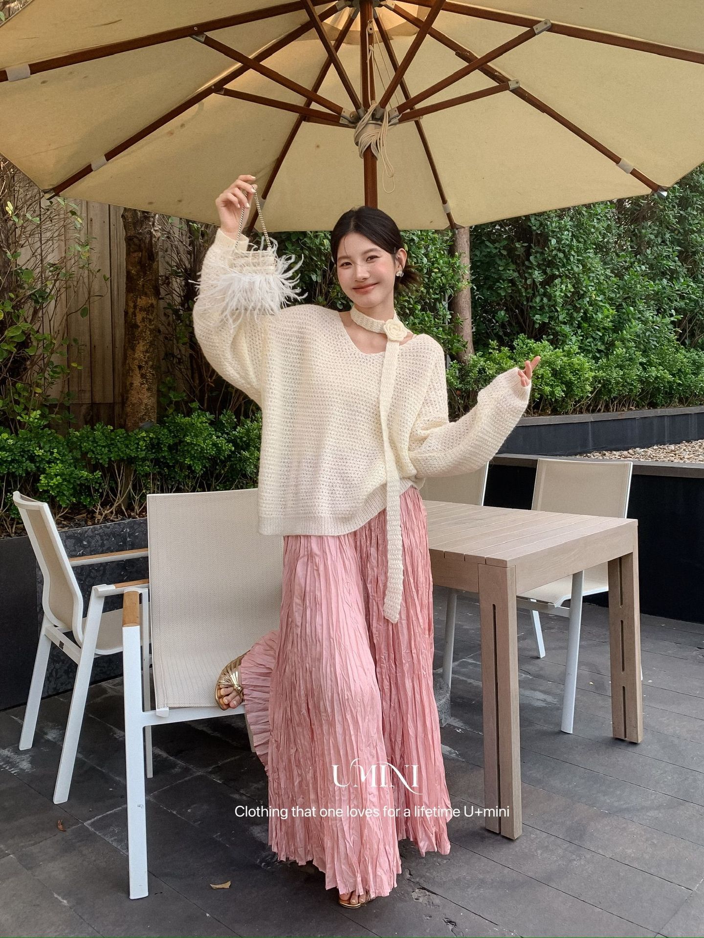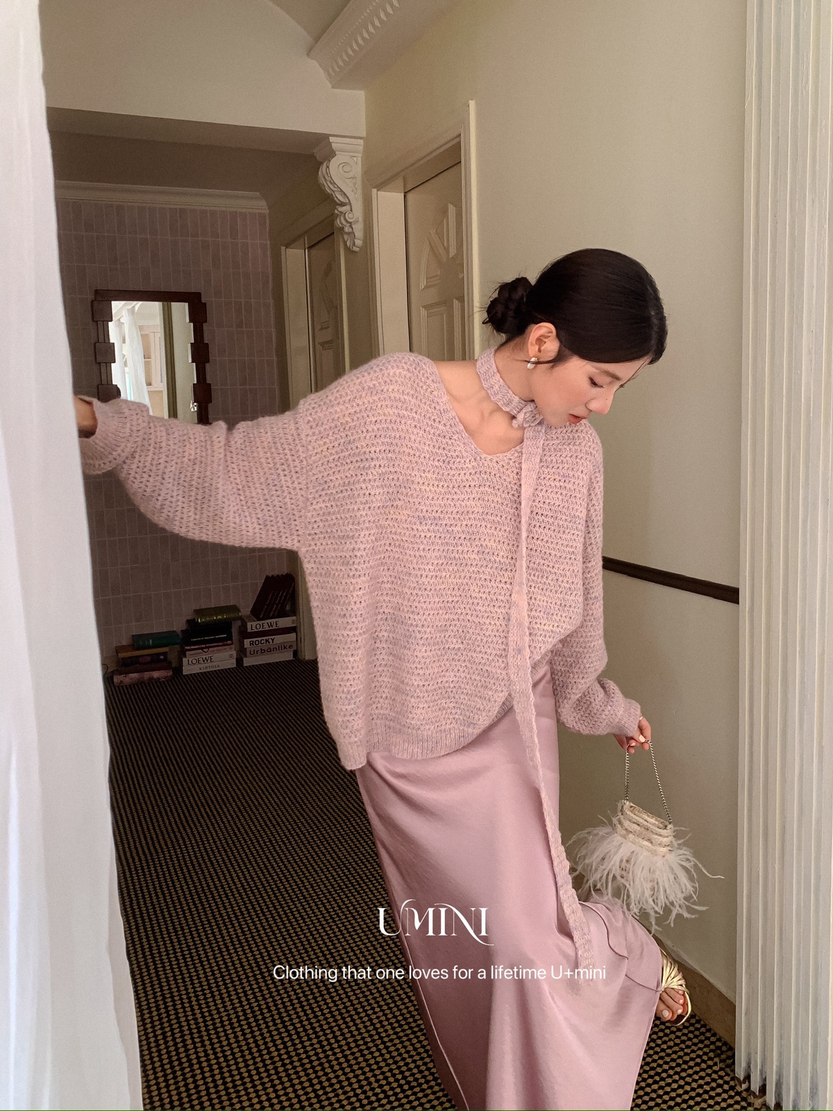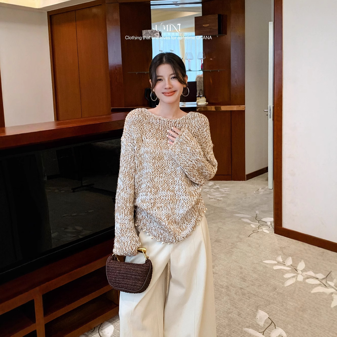 2025秋冬新款点缀温柔镂空针织衫女高级感宽松慵懒风软糯毛衣上衣