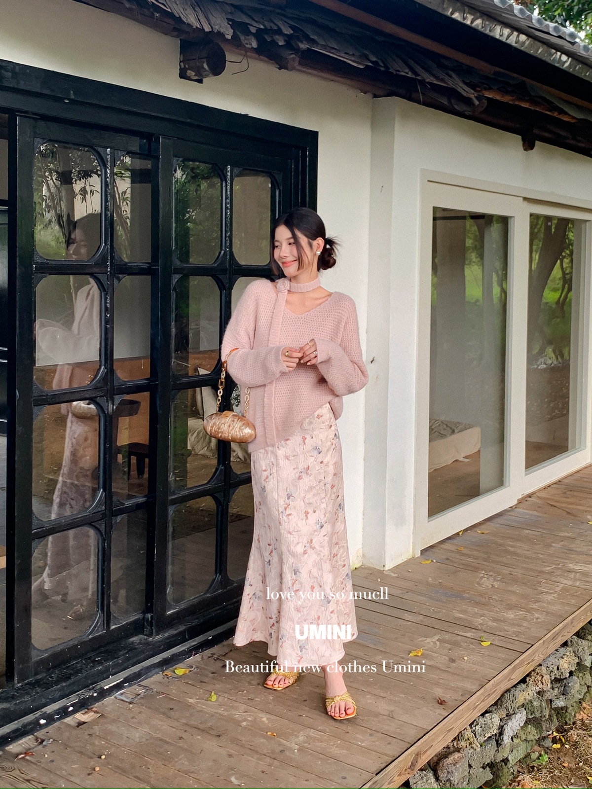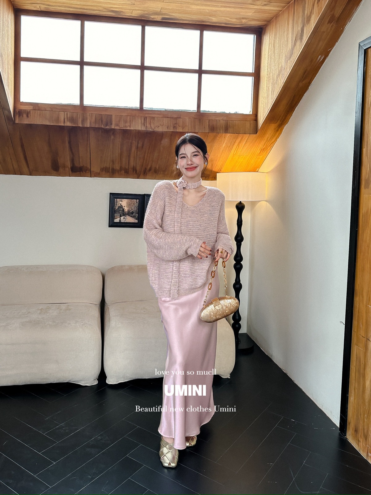 2025秋季新款法式气质风设计感高级宽松毛衣鱼尾半身裙时尚套装女