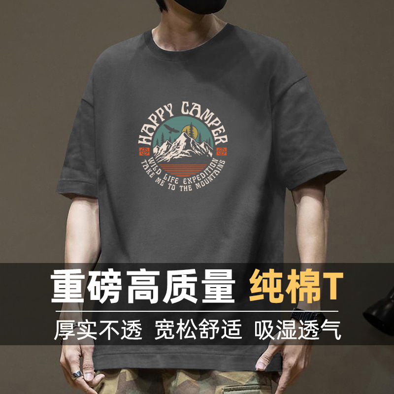 トレンディなブランド Tシャツメンズ 2025 新しい半袖夏トップ学生ルーズ Tシャツ半袖ボトリングシャツ