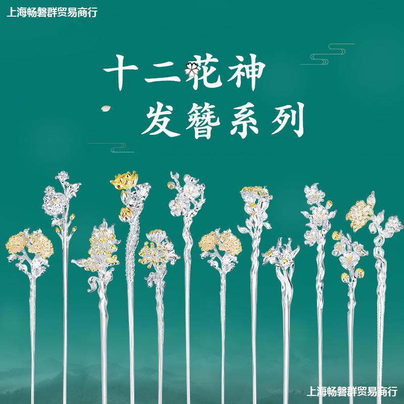 十二花神かんざし保色銅メッキs925銀かんざし花漢服頭飾り日常盤発彼女プレゼント