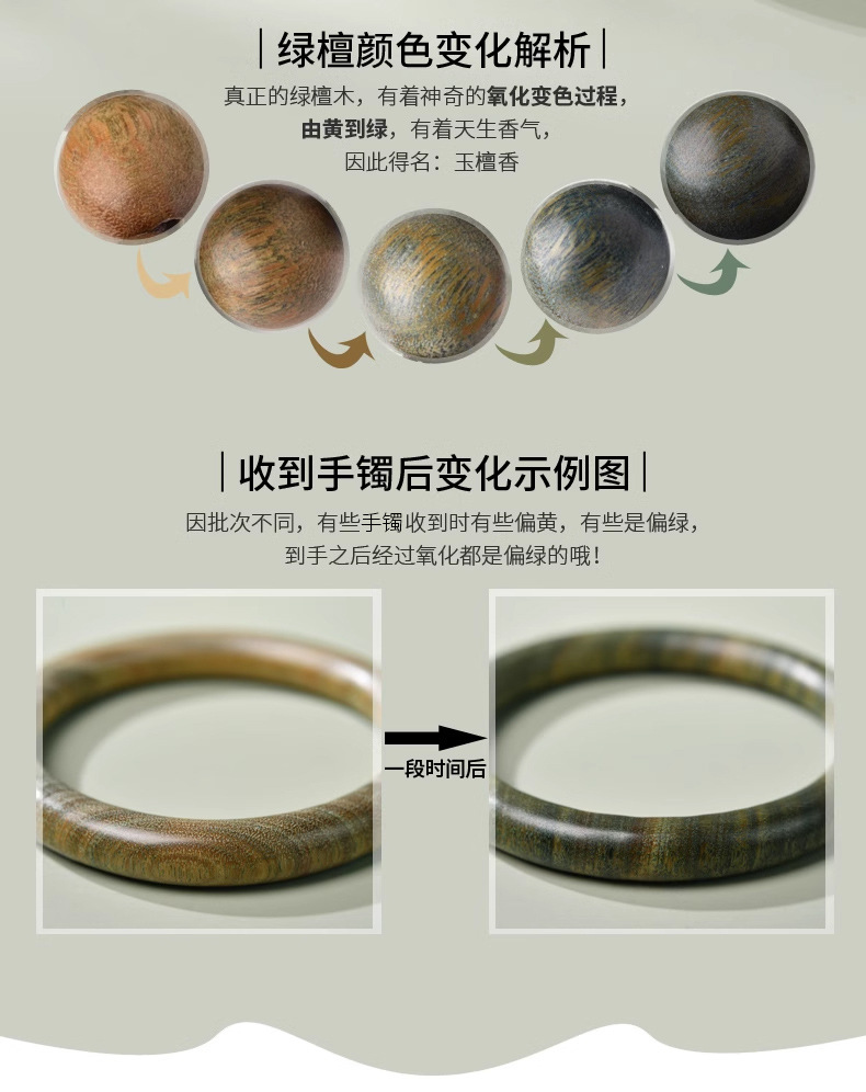 アルゼンチンの緑檀木のブレスレットの古い材料檀木の女性の金の貴妃の腕輪のアクセサリーは彼女にお母さんの手の装飾を送ります。