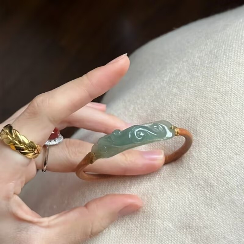 民族風復古祥雲紋皮縄手環は玉石小衆国風禅意ブレスレット古風高級感手飾りを模している
