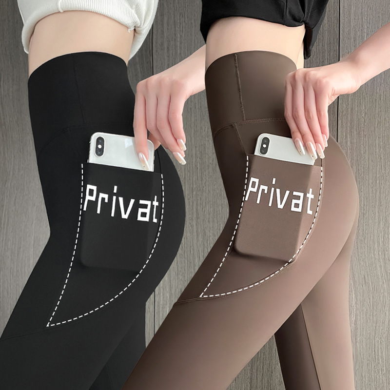 秋と冬のベルベットポケットサメパンツ女性のアウターウェア薄いベルベット大きいサイズヨガパンツ暖かいタイトレギンス 2025 新しいスタイル