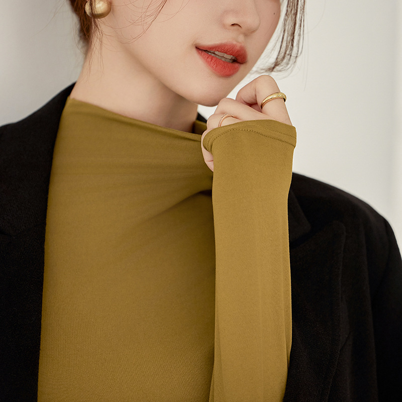 半高襟のボトムシャツの女性は春と秋には高級感があります。
