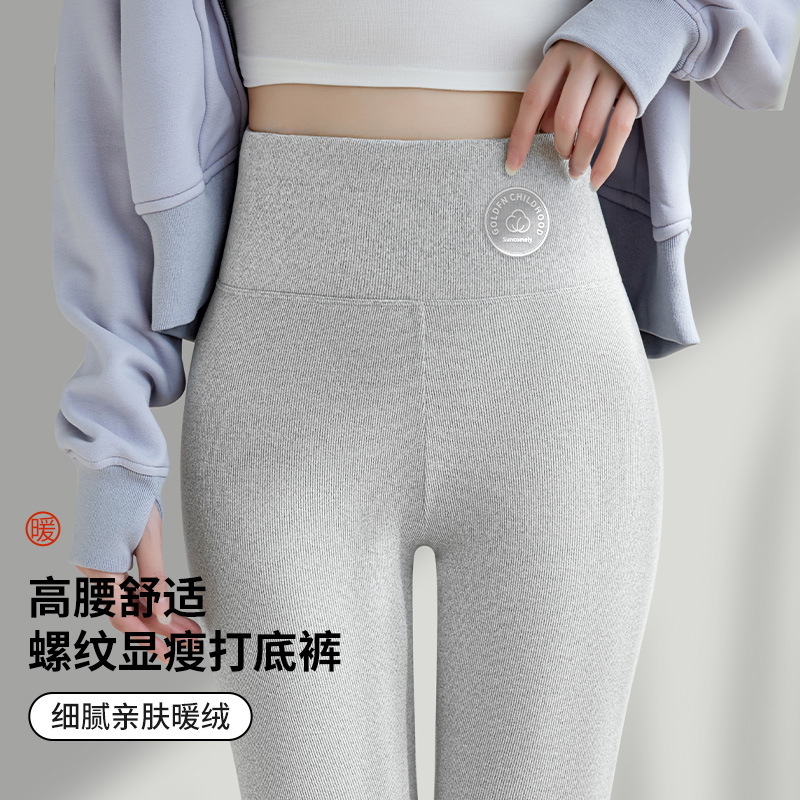 2024 秋と冬のベルベット肥厚グレーレギンス女性のアウターウェア高弾性ラムズウールサーマルパンツ東北綿ウールパンツ