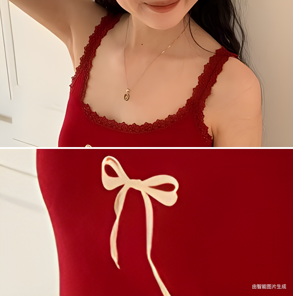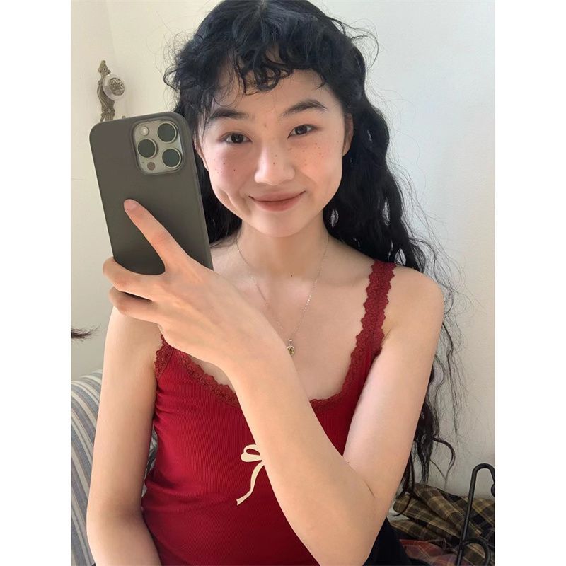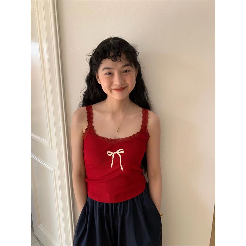 アメリカのギャル風セクシーな赤いキャミソール女性の夏のレースのつなぎ合わせのスリムな短い上着