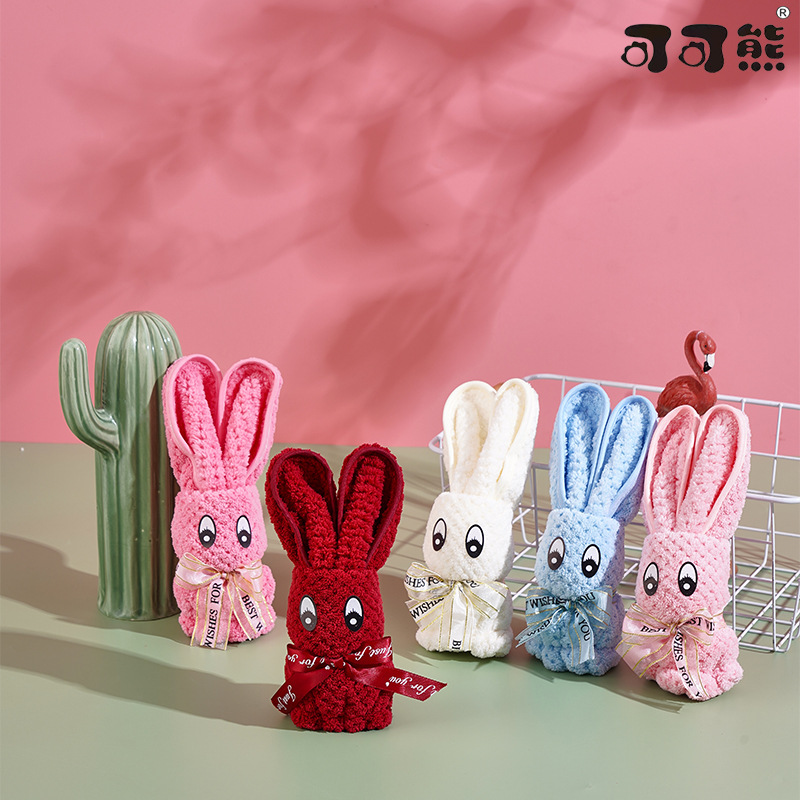 かわいいウサギのタオルのお土産サンゴのベルベットのタオルの喜店の結婚祝いのお土産幼稚園の卒業プレゼント