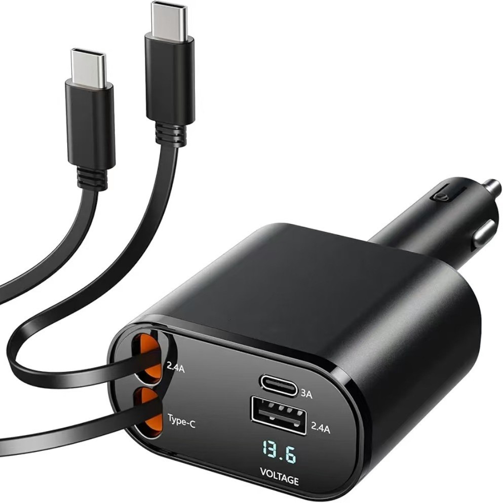 120W星空頂車載充電器超速充は伸縮線四合一の自動車シガレット交換器を持っています。