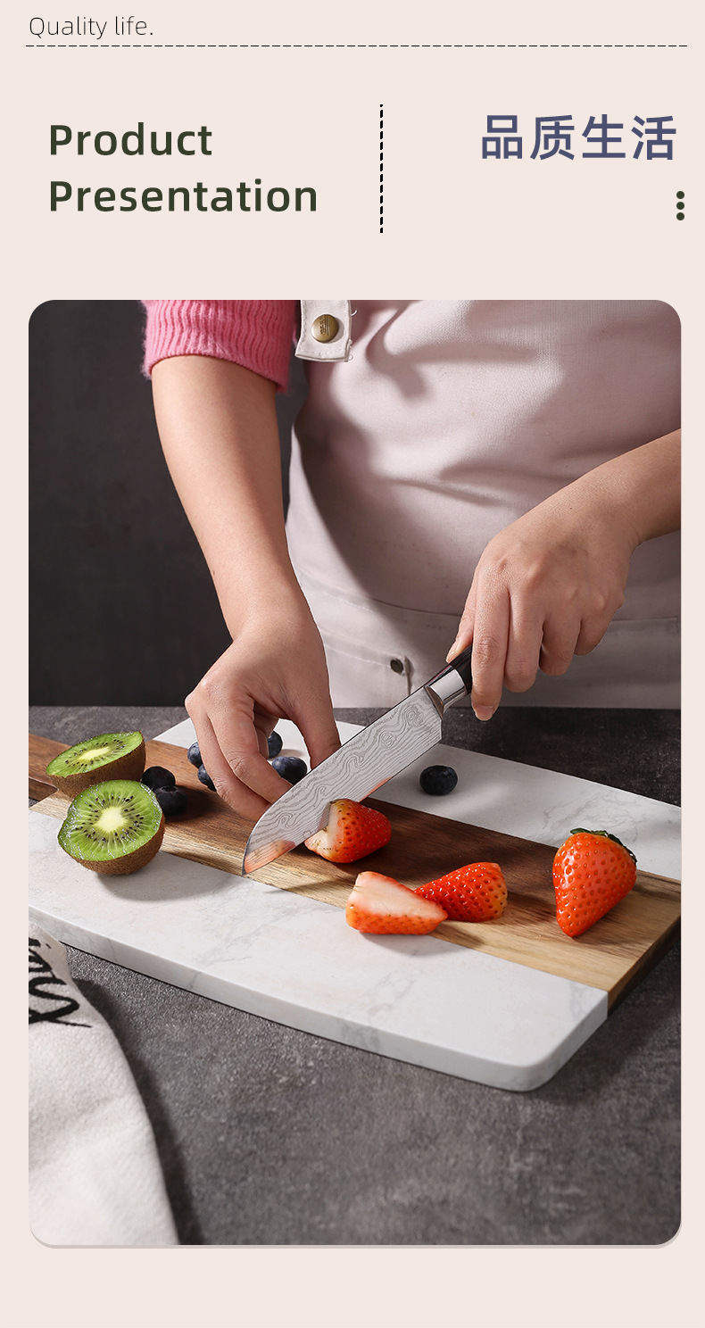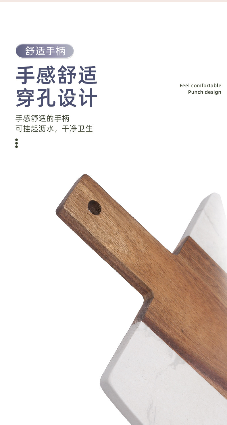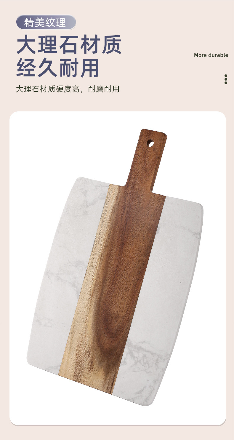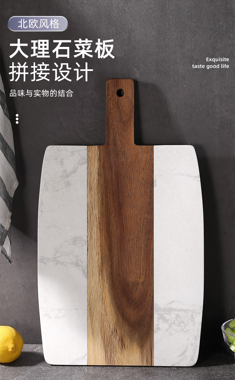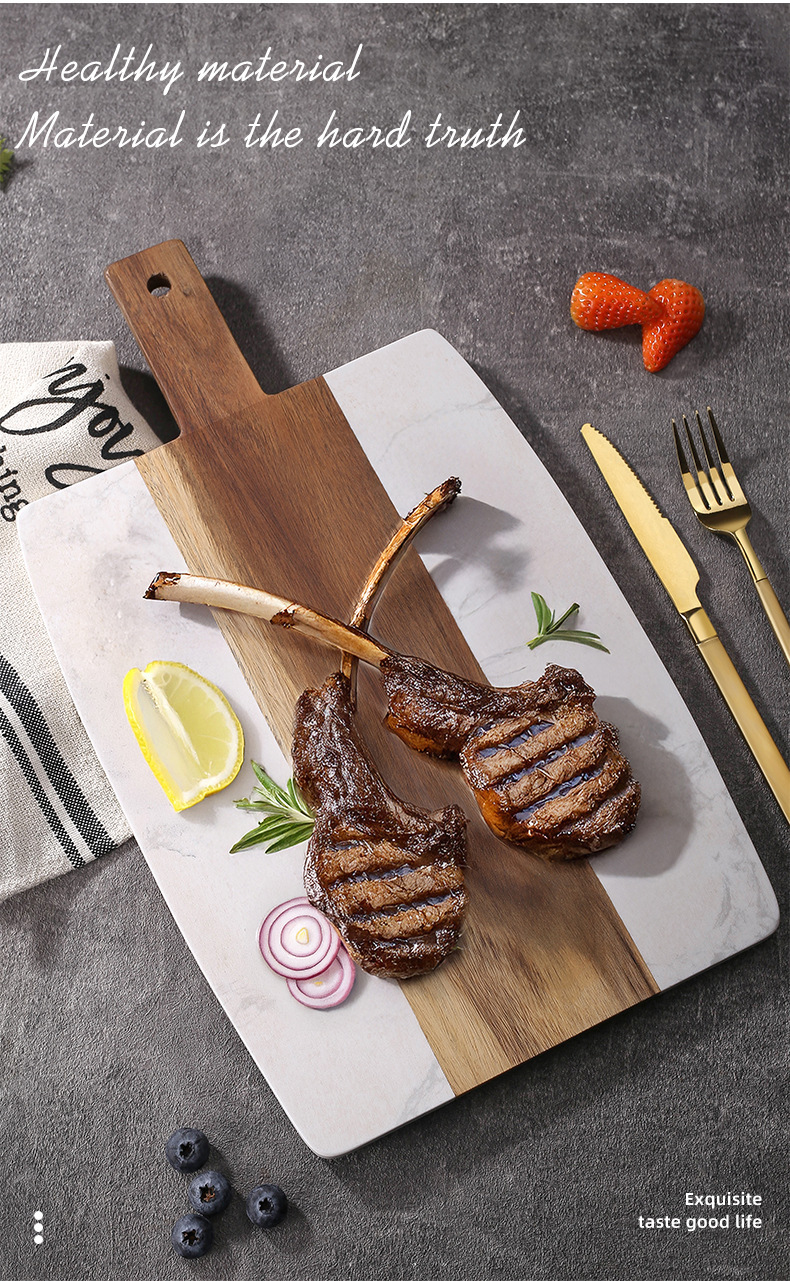 大理石まな板アカシア木は白い大理石まな板をつなぎ合わせて皿を並べます。