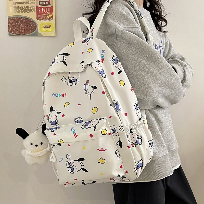 ニッチな新作、日本風韓国風スクールバッグ、女性向け、キュートで爽やかなクロミ柄リュックサック、カジュアルで万能なキャンパスバッグ