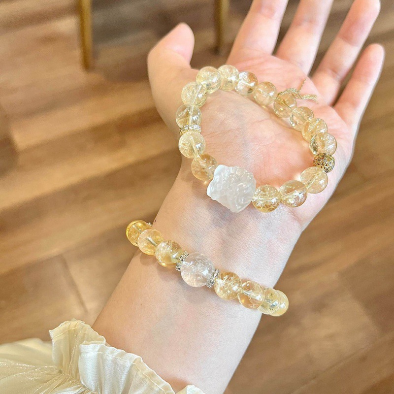 天然シトリン貔貅ブレスレット女性用クリスタルライオンビーズブレスレットナチュラルイエローアサイシトリンブレスレット女性用