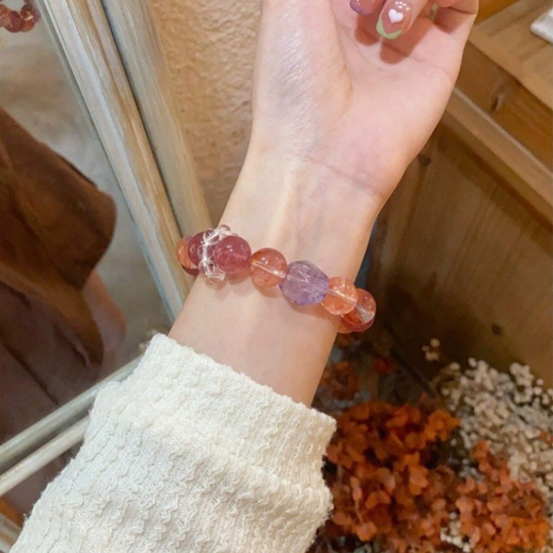 天然粉水晶ブレスレット女性の方糖海藍宝白水晶手串女性デザインのファッションは彼女にプレゼントします。