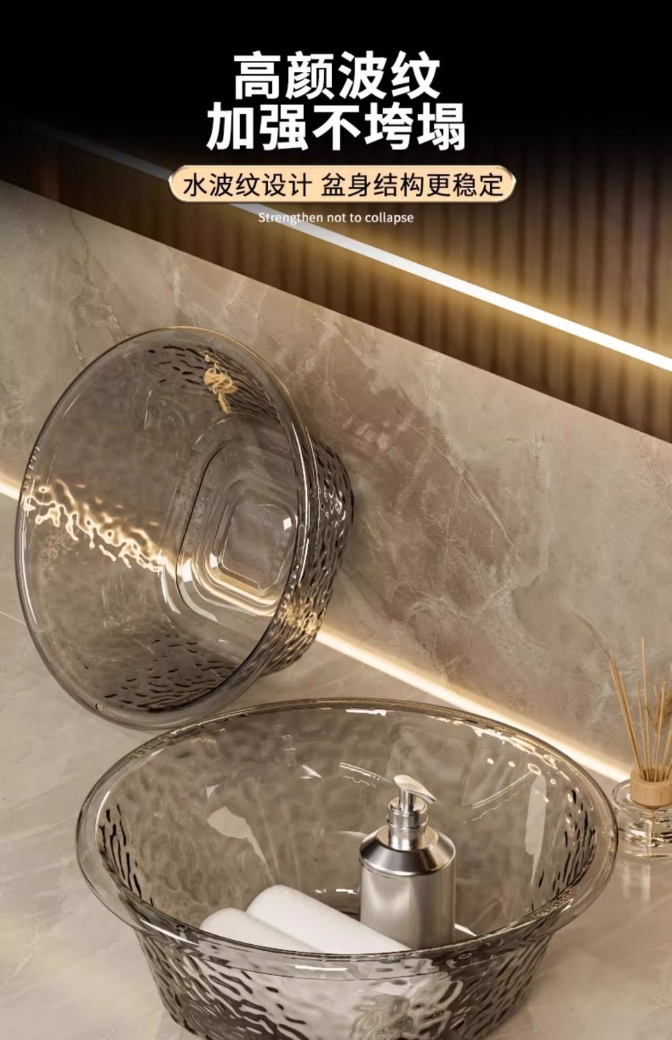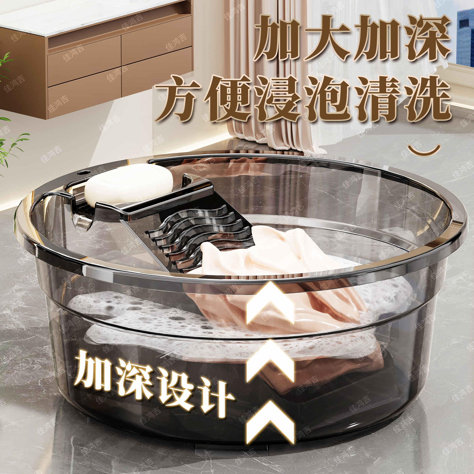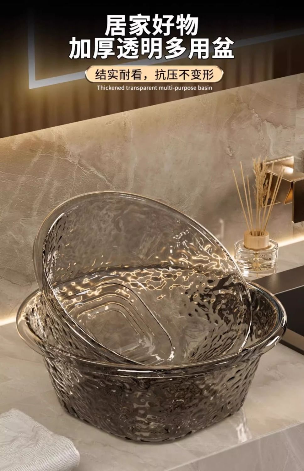 軽豪華高颜値水波紋厚透明洗面器家庭用プラスチック洗面器寮洗濯洗面器