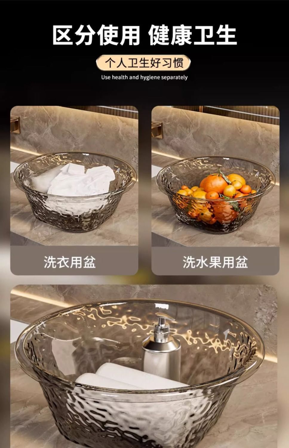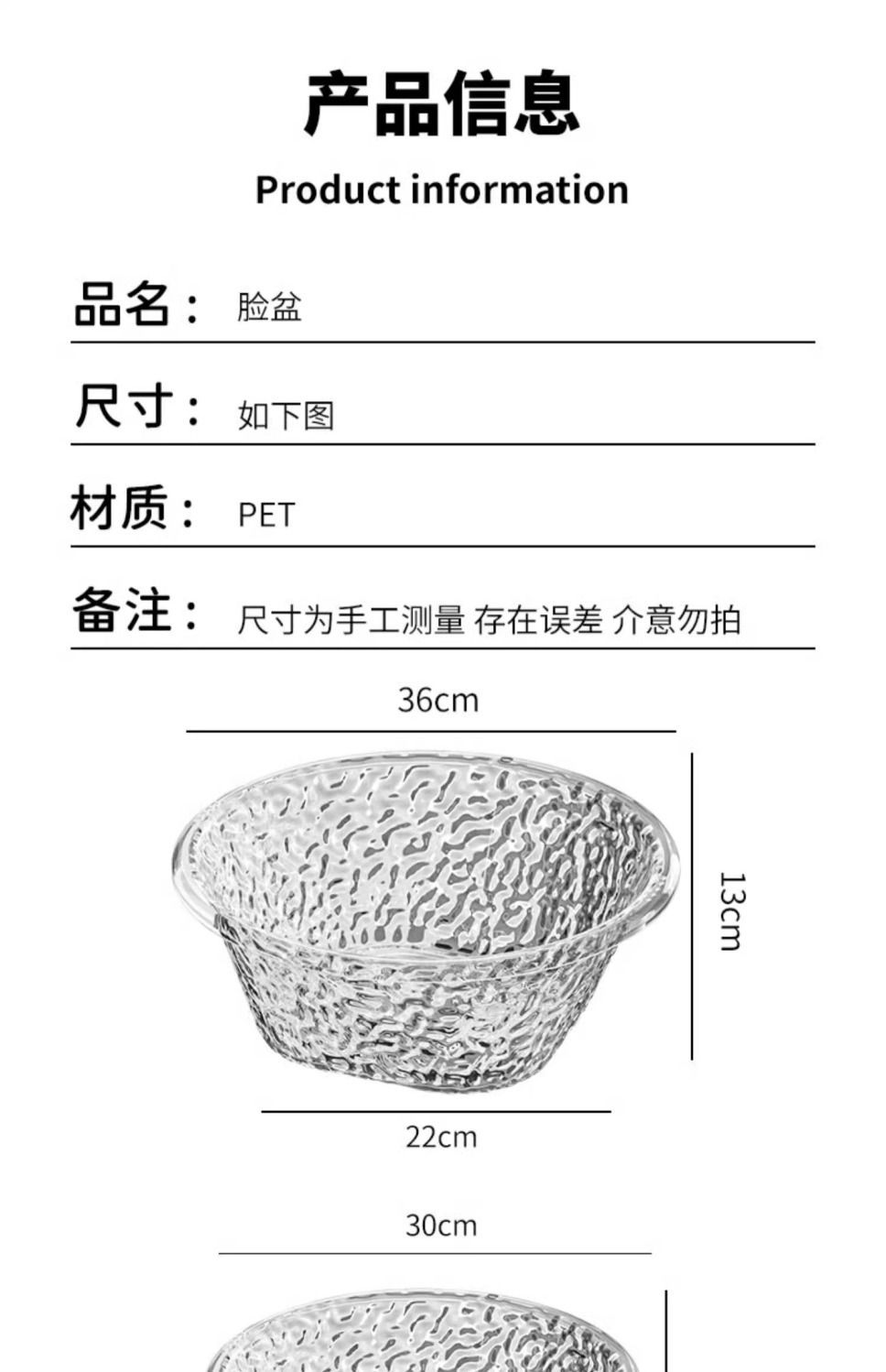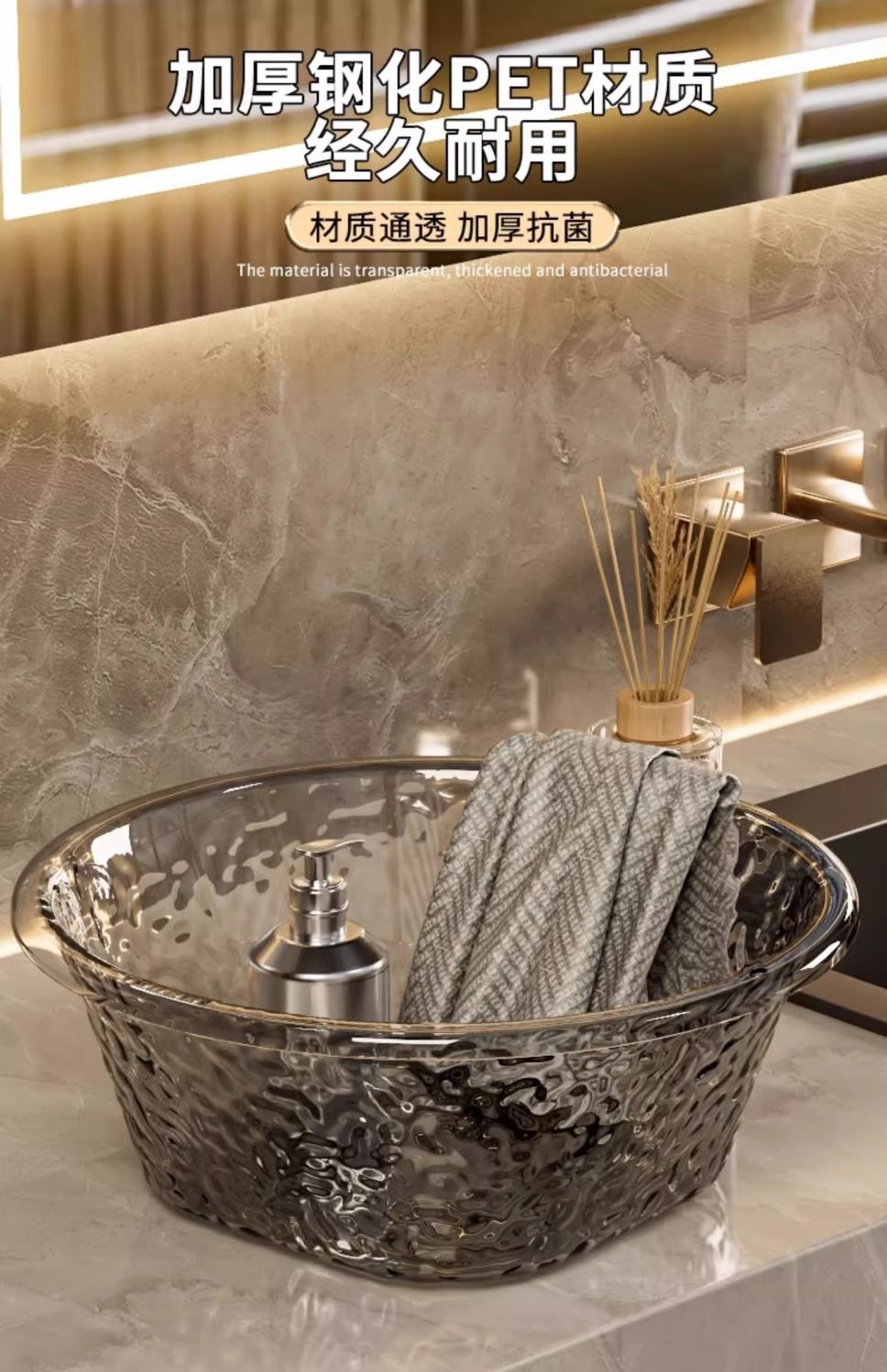 軽豪華高颜値水波紋厚透明洗面器家庭用プラスチック洗面器寮洗濯洗面器