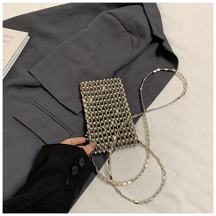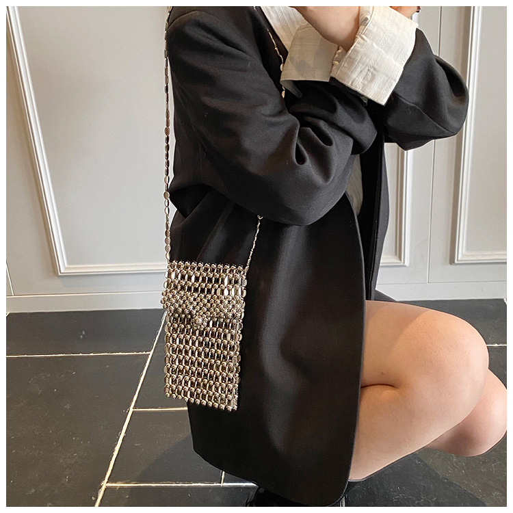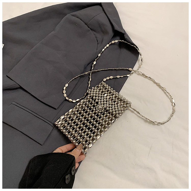 韓国系ファッション少女キラキラ銀色ビーズバッグクロスボーダー手作りショルダーバッグファッション旅行休暇ショルダーバッグ