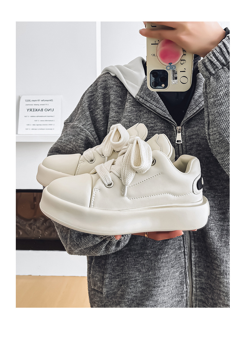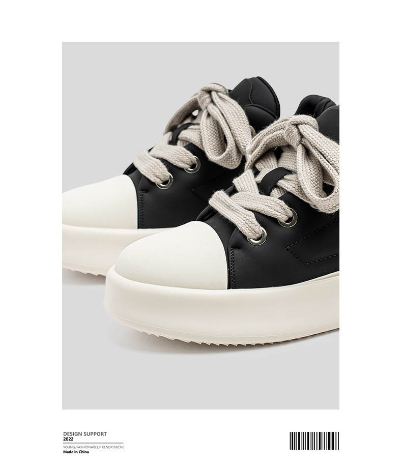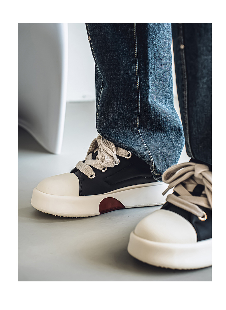 男性の靴の春の2025新型の厚い底の大きい頭のパンの靴の青少年のレジャーの板の靴の小さい大衆の日本の黒色のファッションの靴