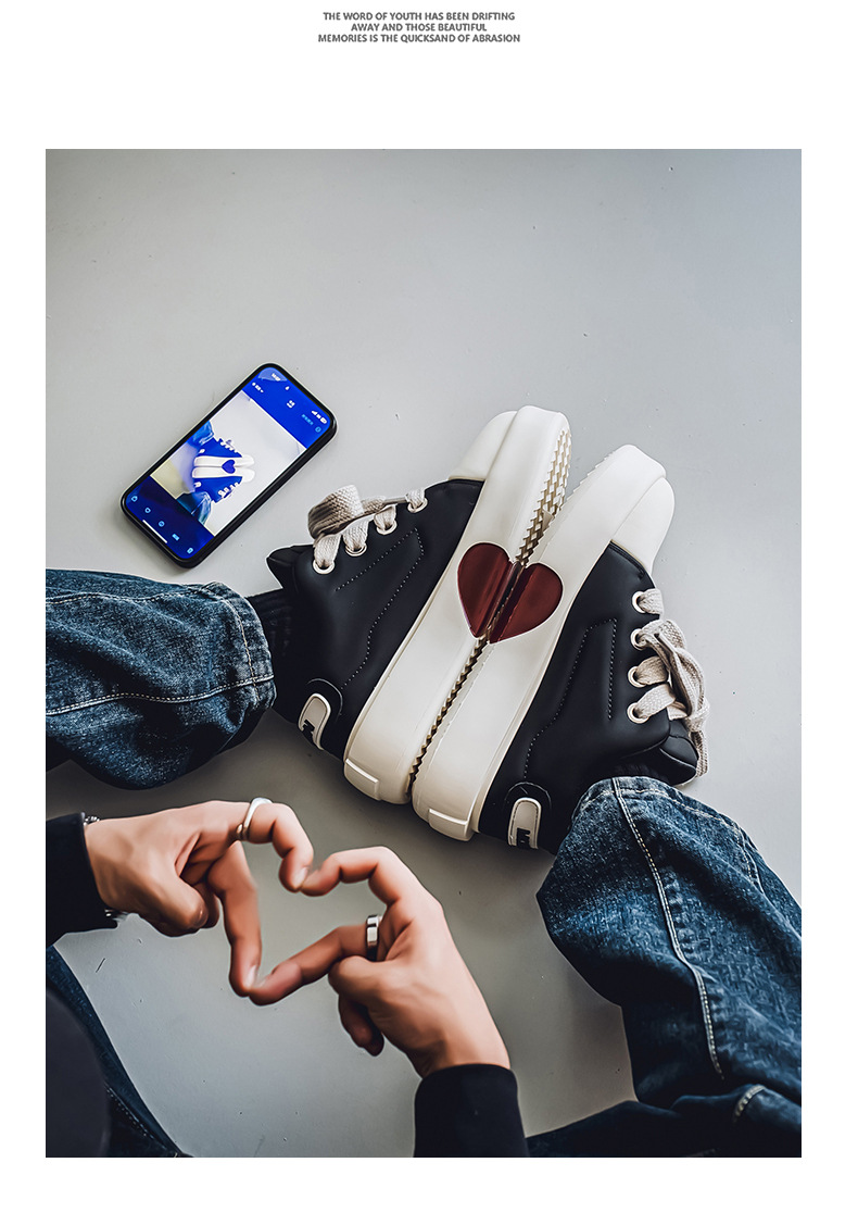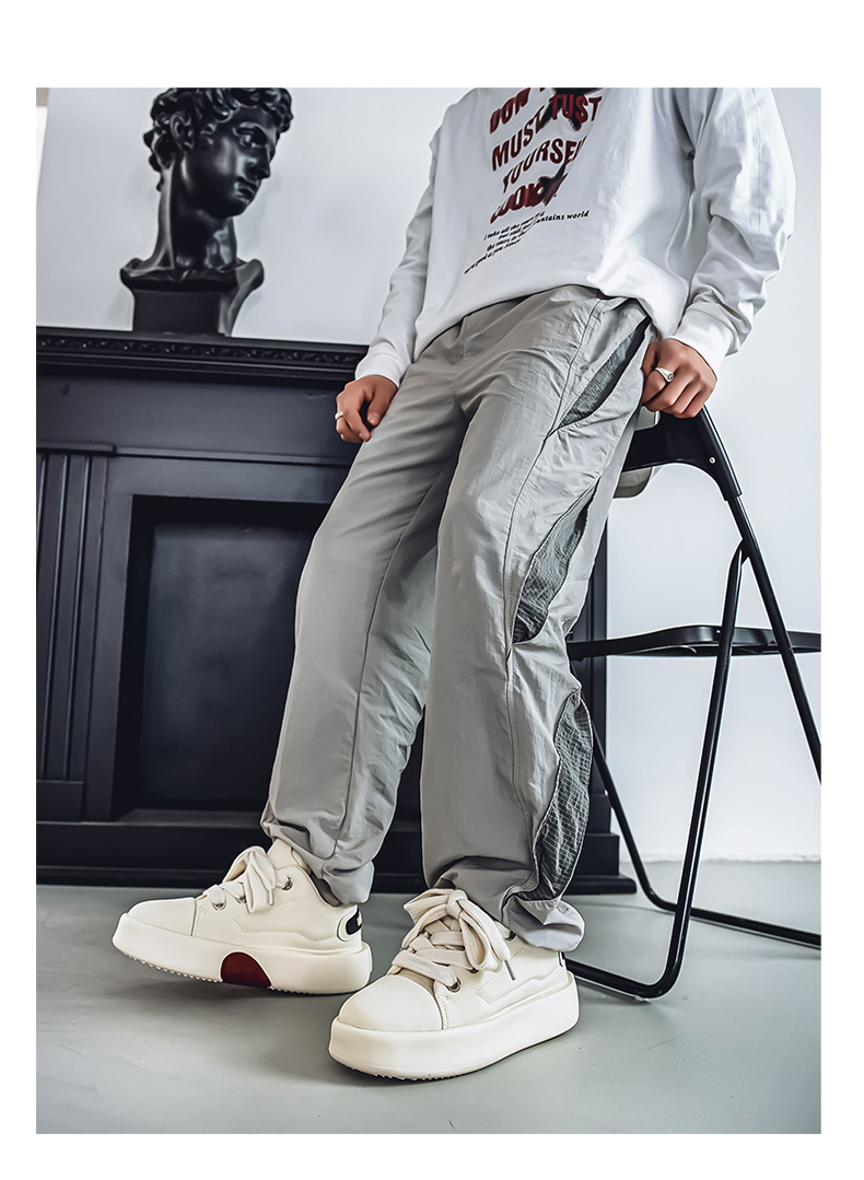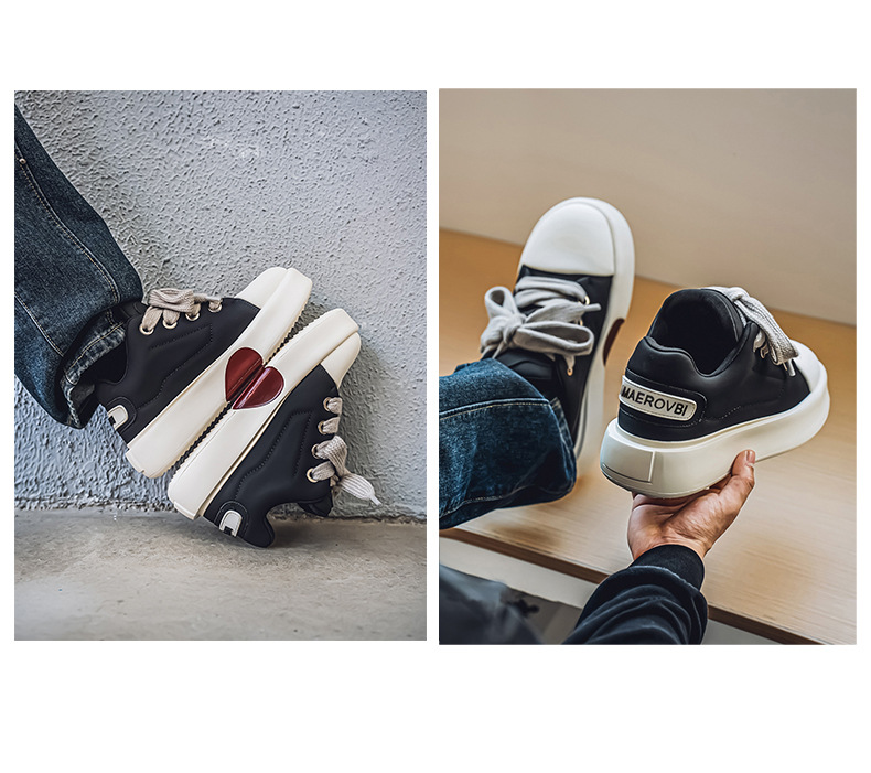 美式高街板鞋男厚底增高倒三角休闲鞋新款黑色百搭cleanfit潮鞋