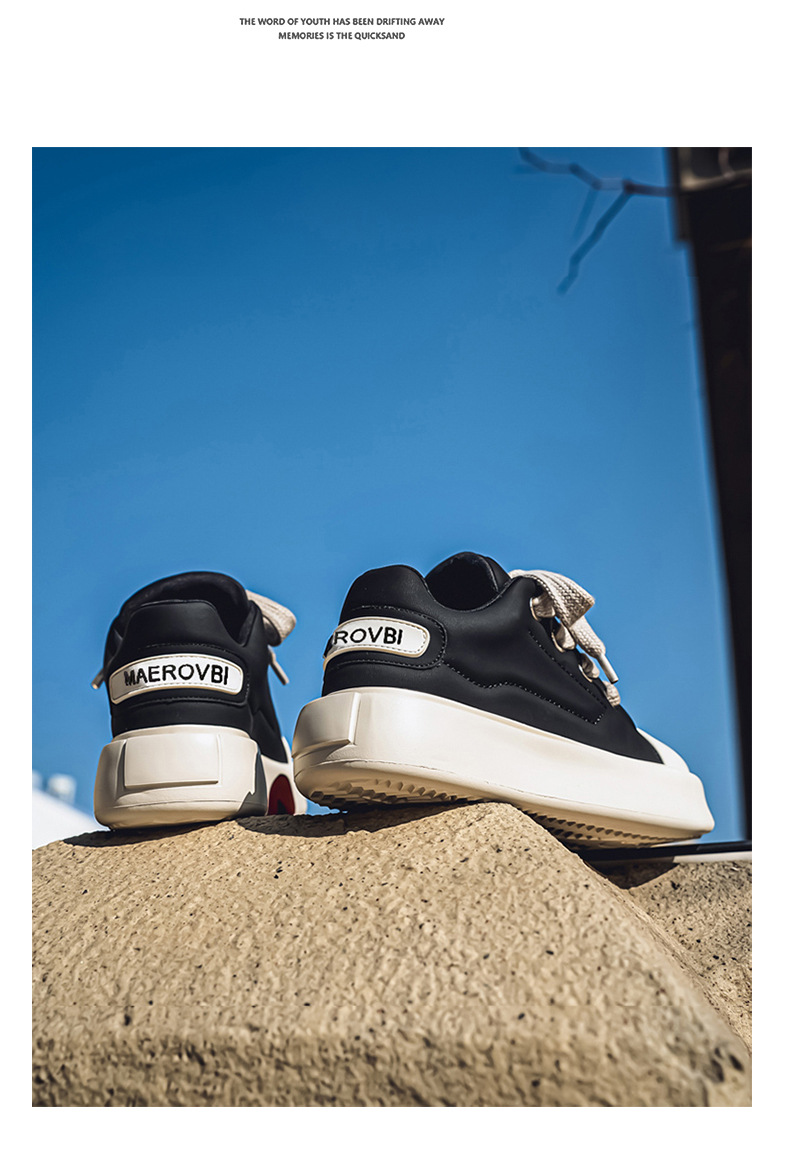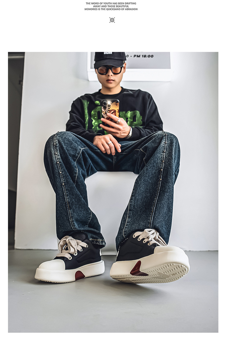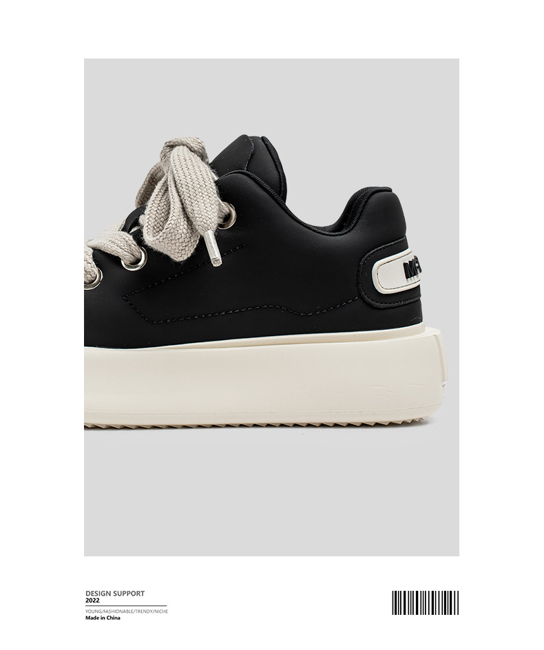 男鞋春季新款厚底大头面包鞋青少年休闲板鞋小众日系黑色潮鞋