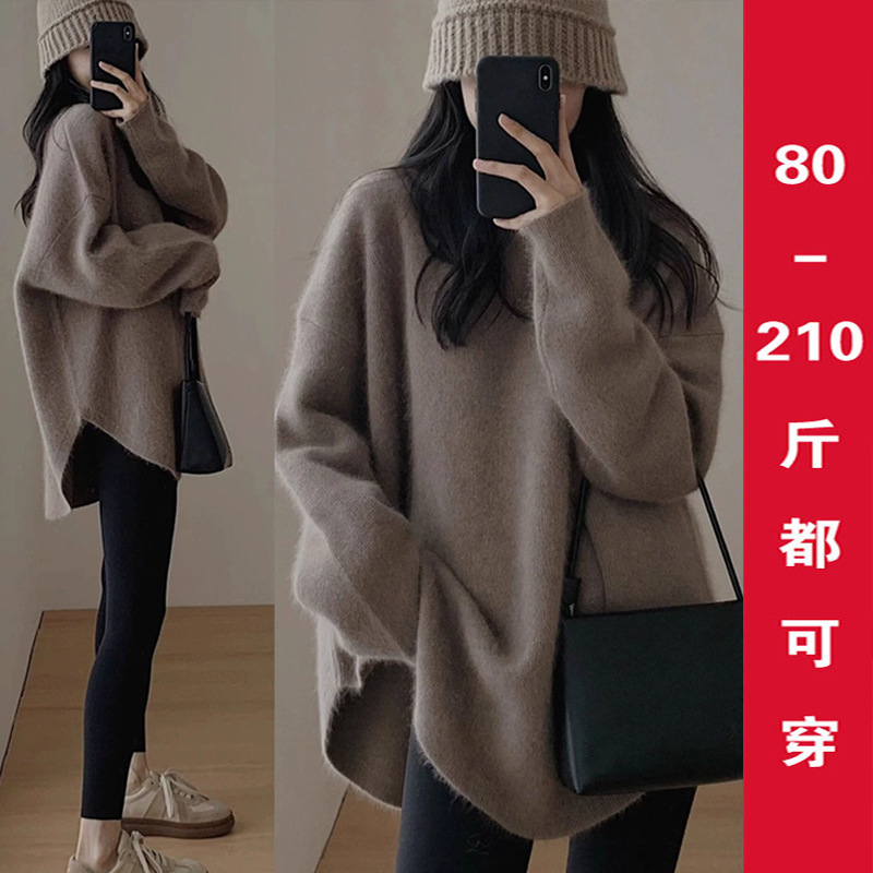冬季加绒加厚大码胖mm半高领毛衣女长袖针织一体绒打底衫内搭上衣