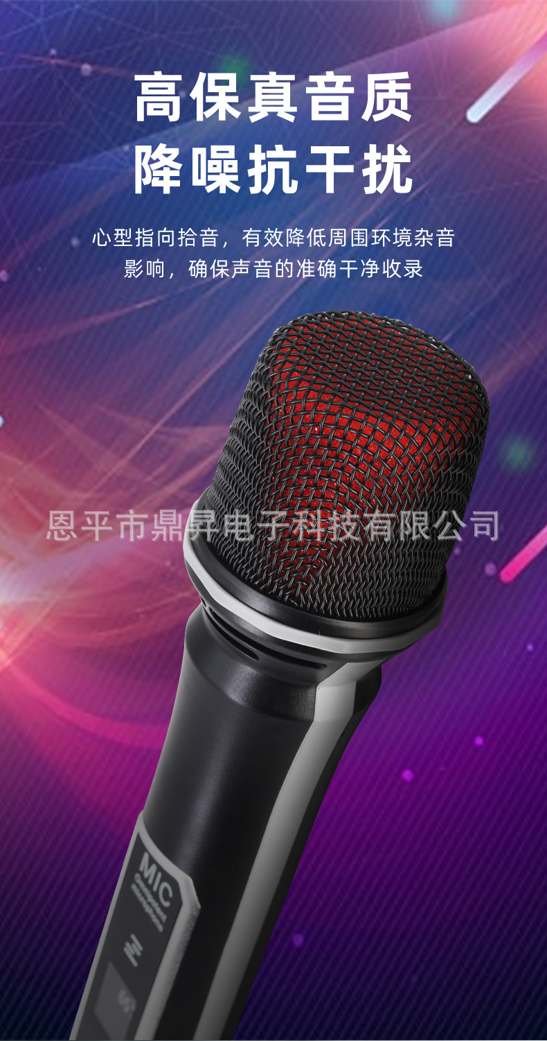 跨境无线麦克风手持动圈话筒防啸叫一拖二舞台话筒声卡直播麦克风