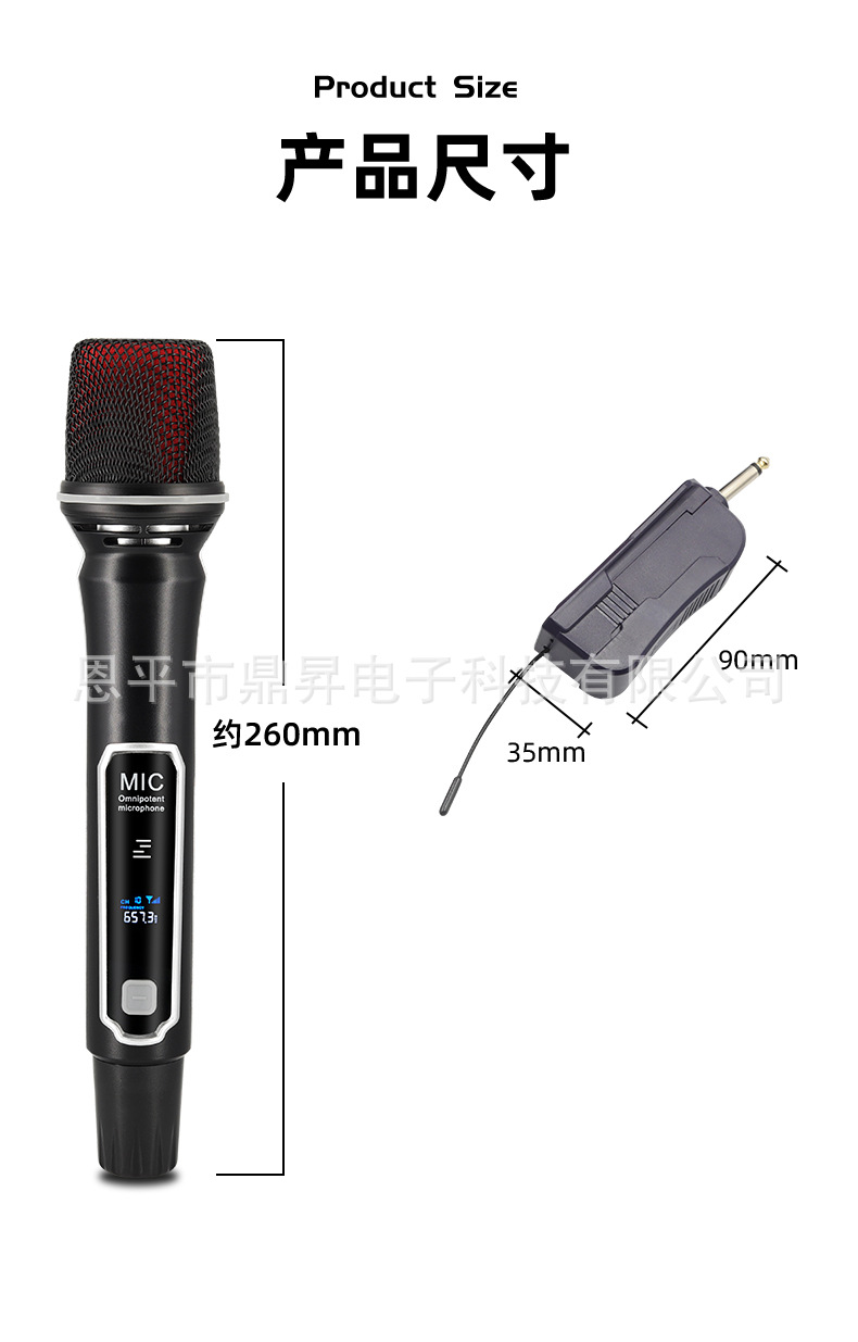 无线充电话筒万能麦一拖二U段50米音响户外舞台K歌麦克风高音质