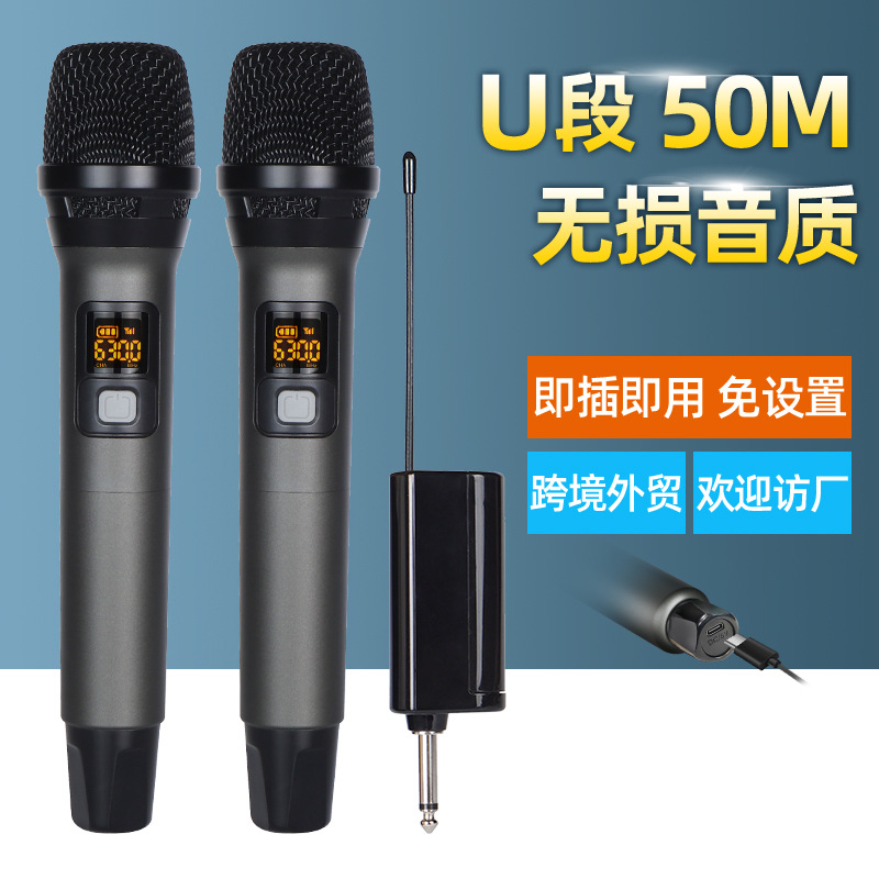 无线话筒U段一拖二万能麦KTV舞台音响直播手持充电麦克风高音质