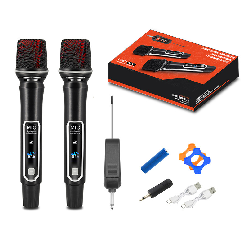 クロスボーダーワイヤレスマイク ハンドヘルドダイナミックマイク フード付きマイク 二つのマイクを同時使用可能 ステージマイク サウンドカード ライブマイク
