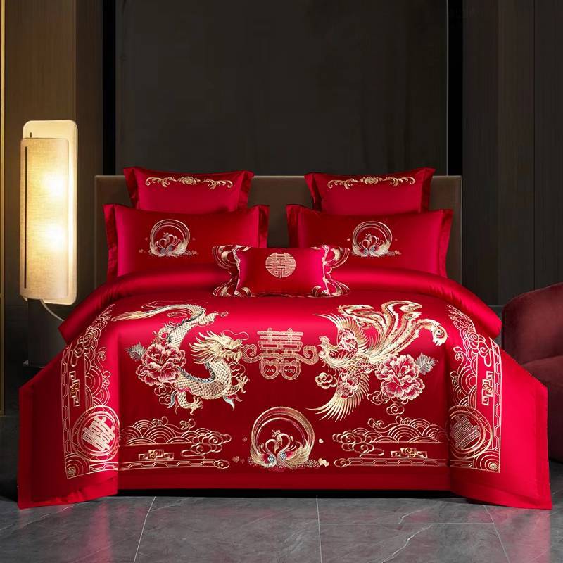 2025慕彼女の結婚祝いの4点セットの大きな赤い毛磨き綿刺繍結婚工芸品の寝具