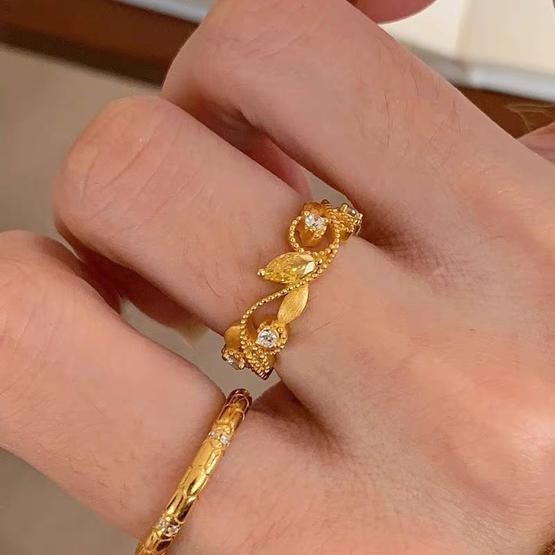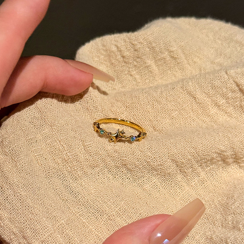 小红书爆款小清新金色少女魔法小众复古高级开口戒指彩宝轻奢指环