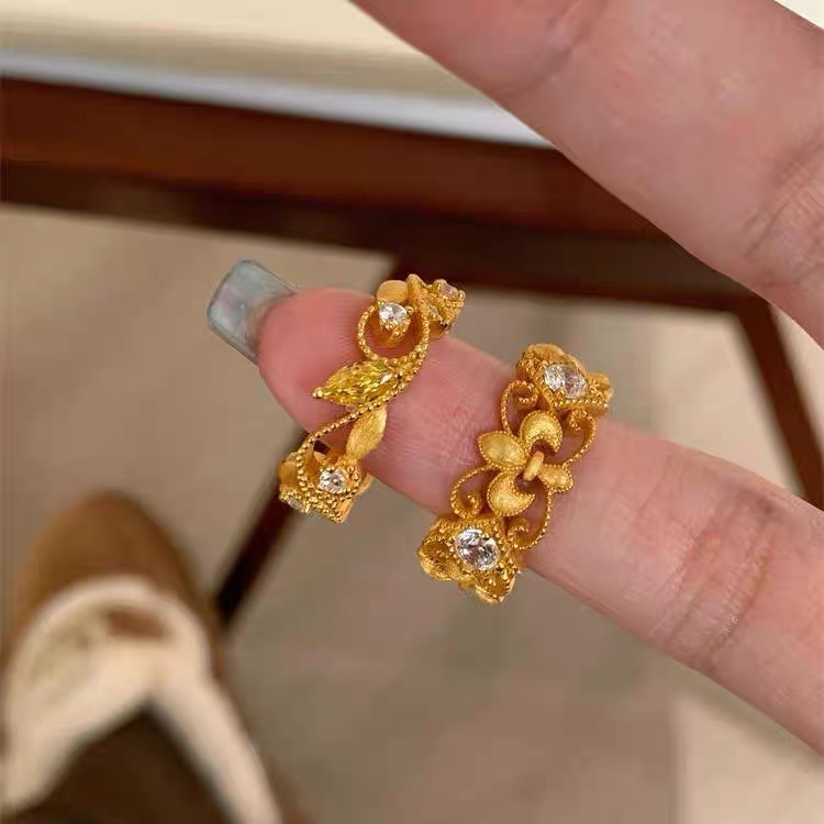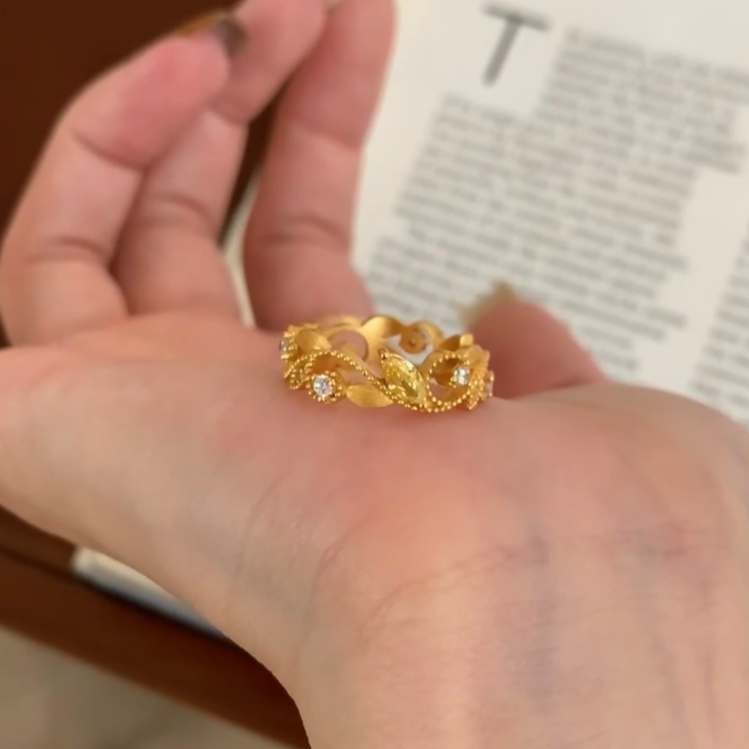 小紅書の新型アイリスの透かし彫りの指輪2024ファッションの軽豪華な大衆は個性の気質を設計します。