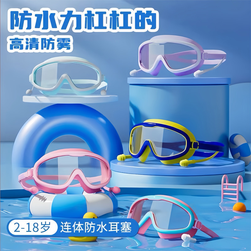 男の子と女の子用の子供用スイミングゴーグル、高精細防水防曇大型フレームメガネ、ダイビングゴーグル、スイミングキャップ、専門機器