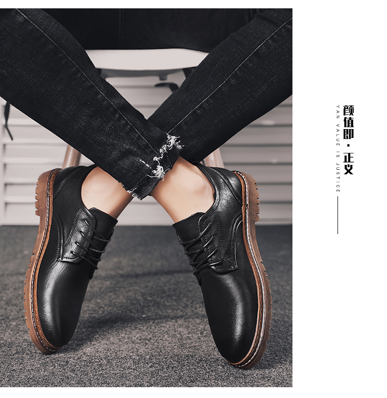 青年革靴男性韓国版トレンド春百合2025ビジネスカジュアル靴が高くなりました。