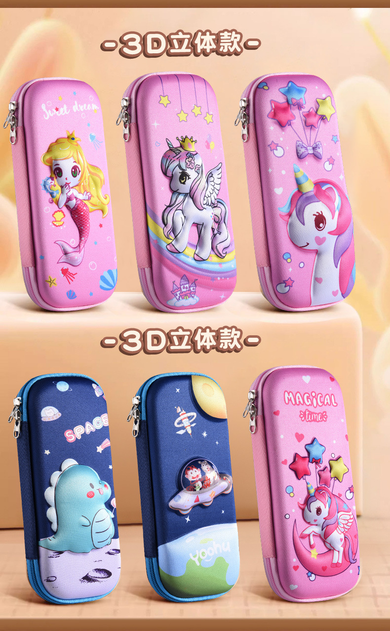 卸売カスタム人気小学生3D EVA文具箱、男の子と女の子向けのかわいい漫画柄大容量高品質ペンケース