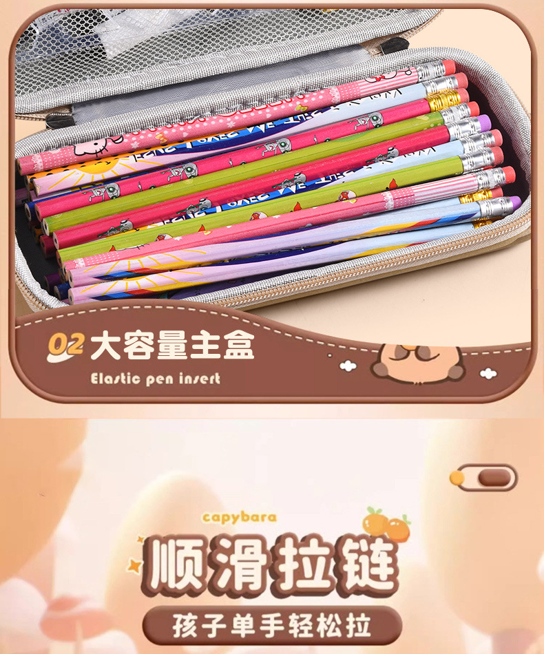 小学生卡皮巴拉3D立体文具盒儿童高级感铅笔盒男女EVA大容量收纳
