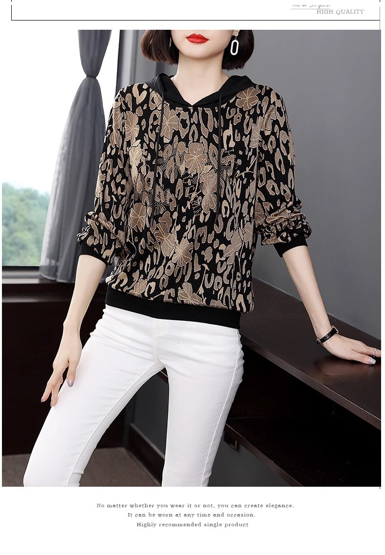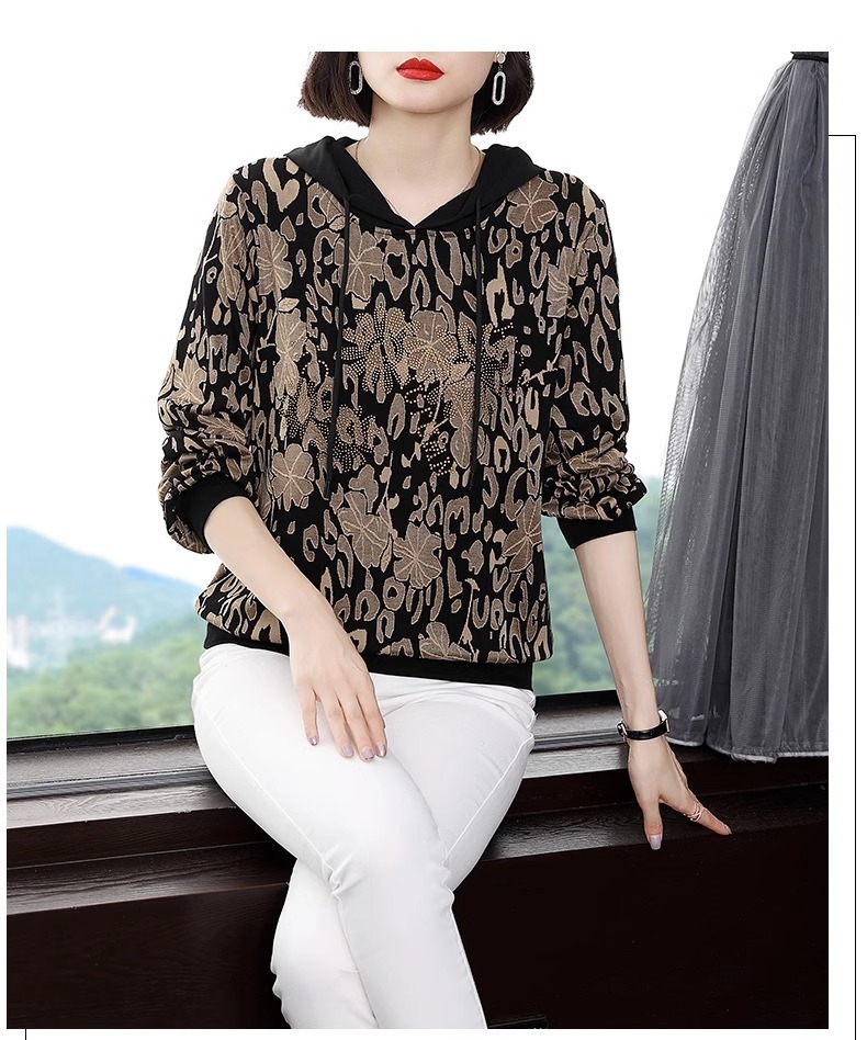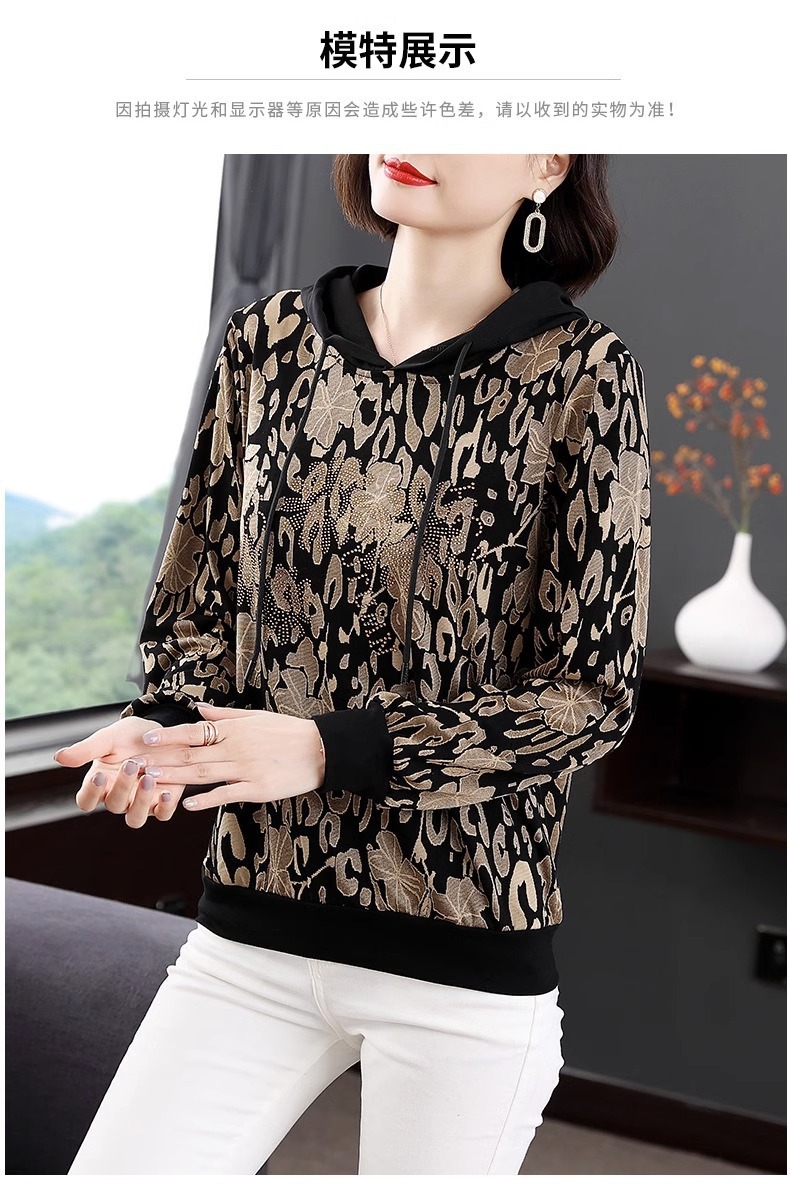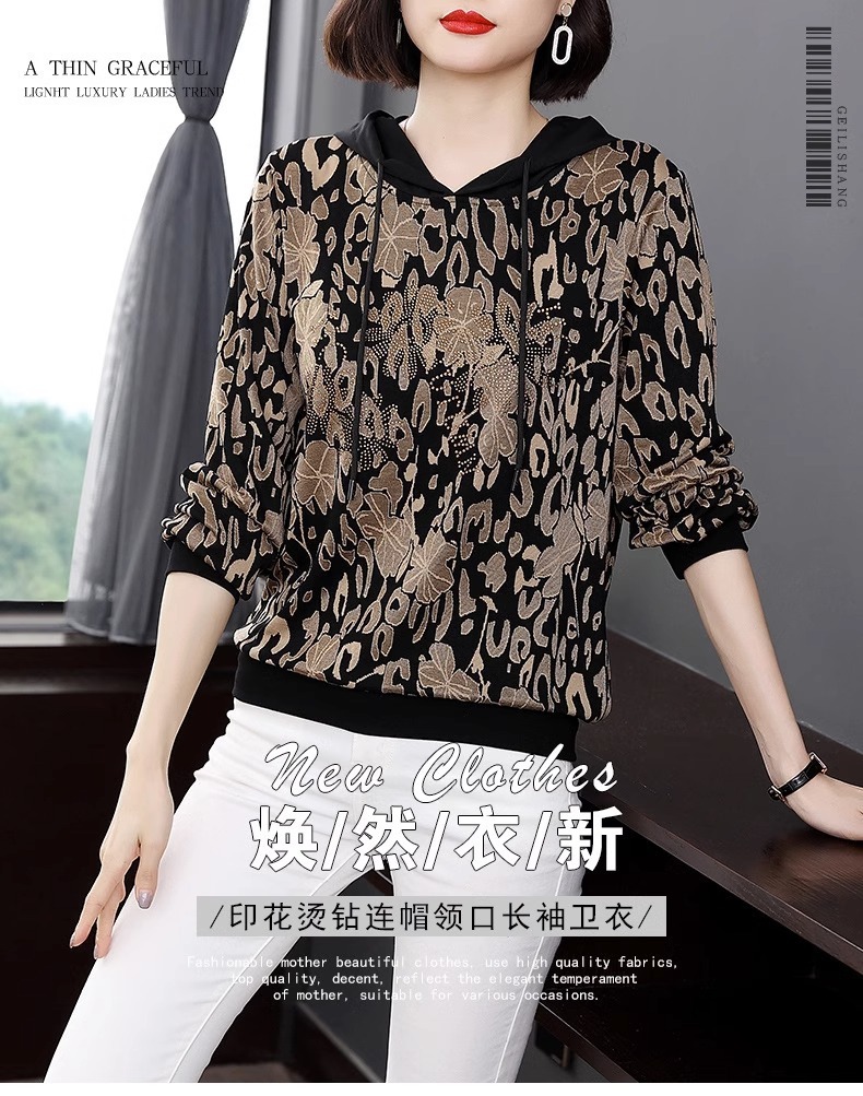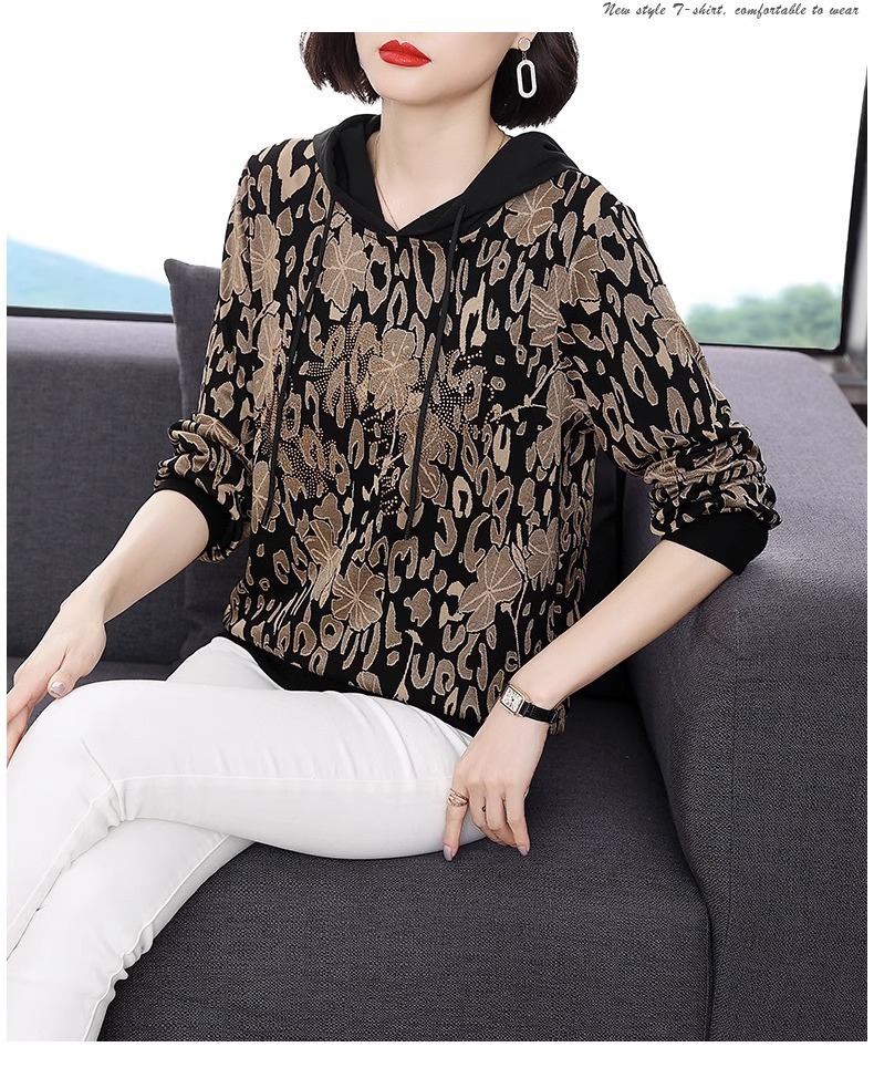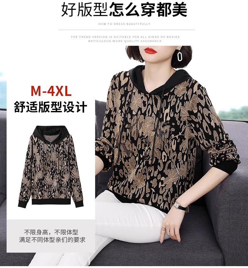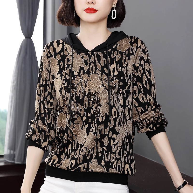 2025年春秋薄手スウェットシャツ レディース 中高年ママ向け 長袖Tシャツ 大きいサイズ フード付きトップス インナーウェア
