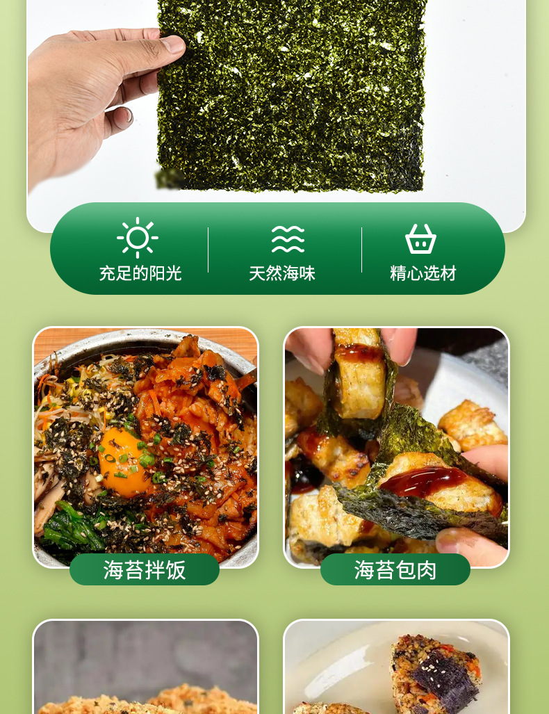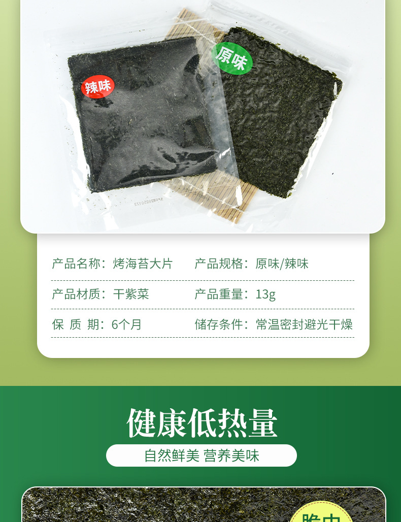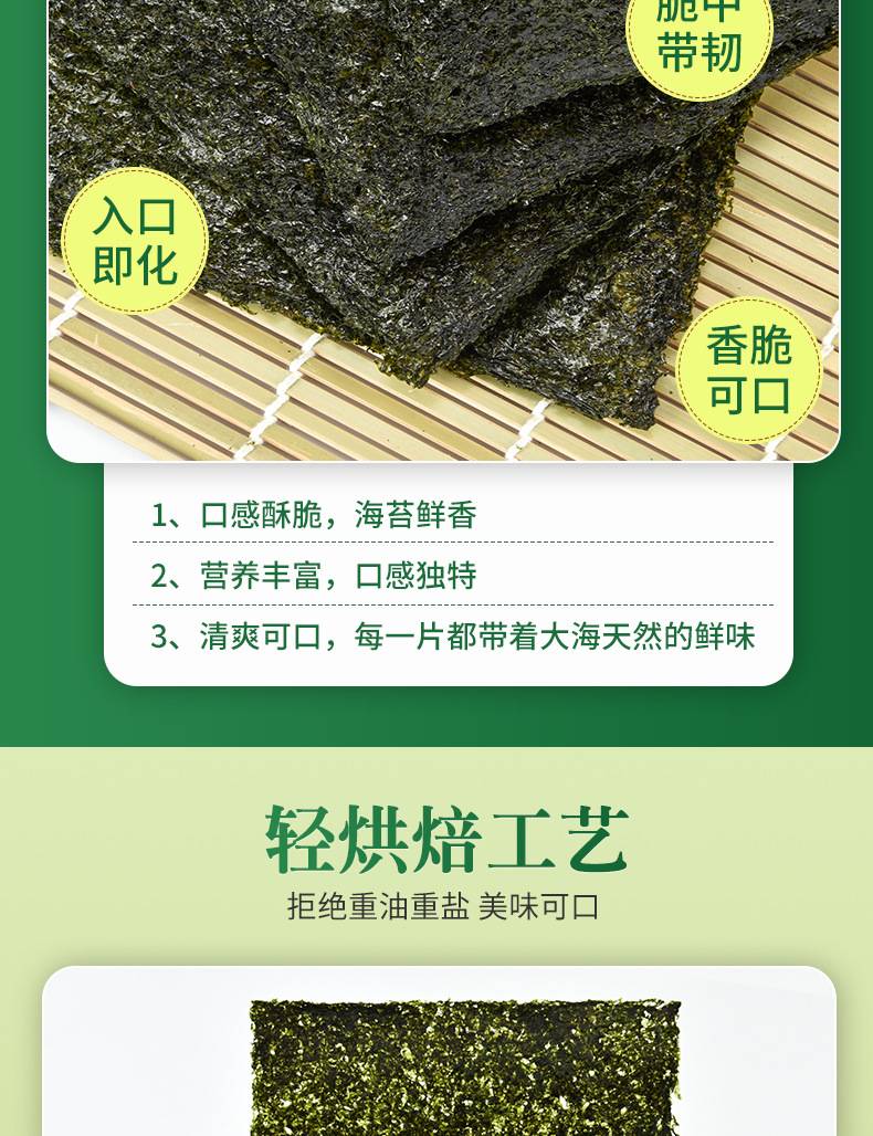 海苔片 即食200片网红调味海苔寿司片儿童女士健康休闲零食批发