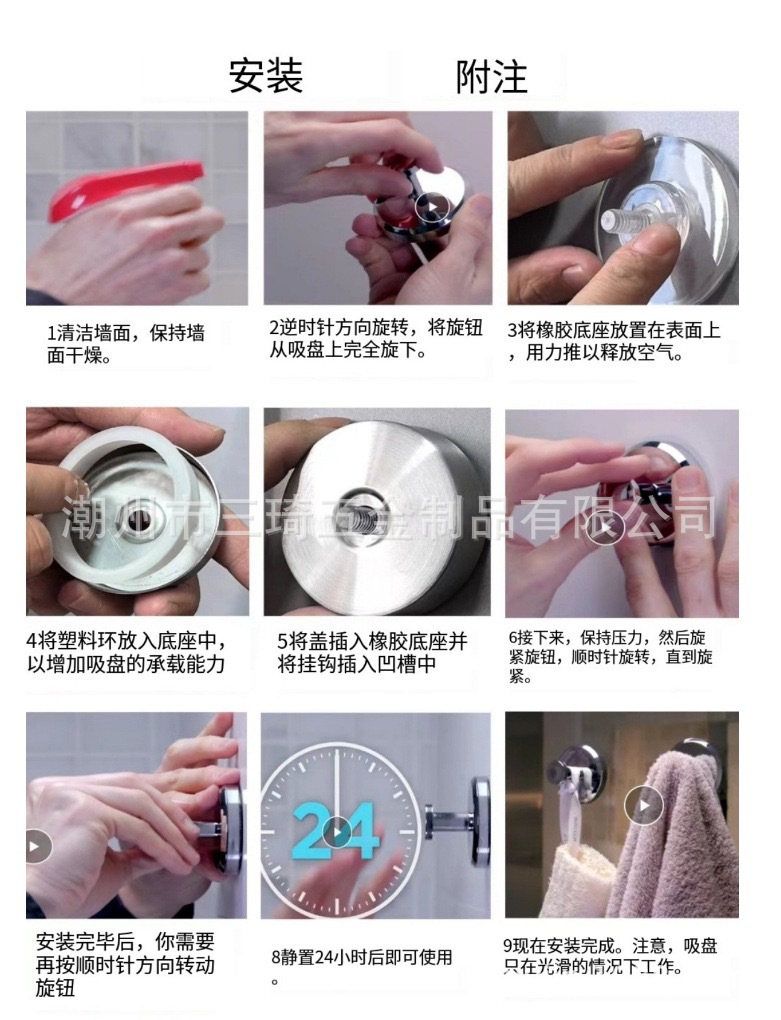 クロスボーダー吸盤ステンレス無痕強力粘着フック穴なしキッチン浴室服帽子ドア後金属吸盤フック