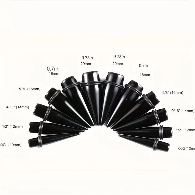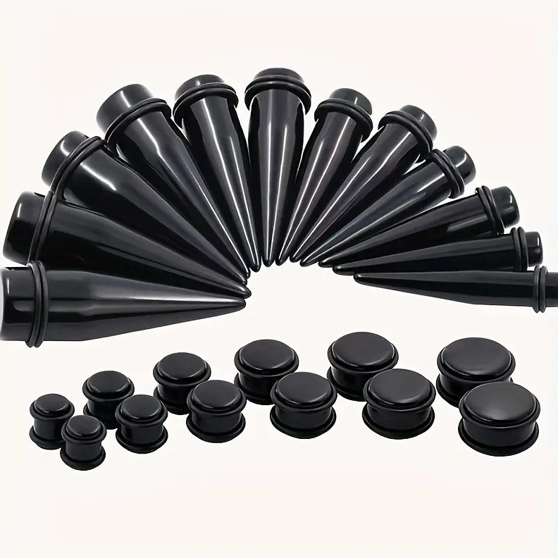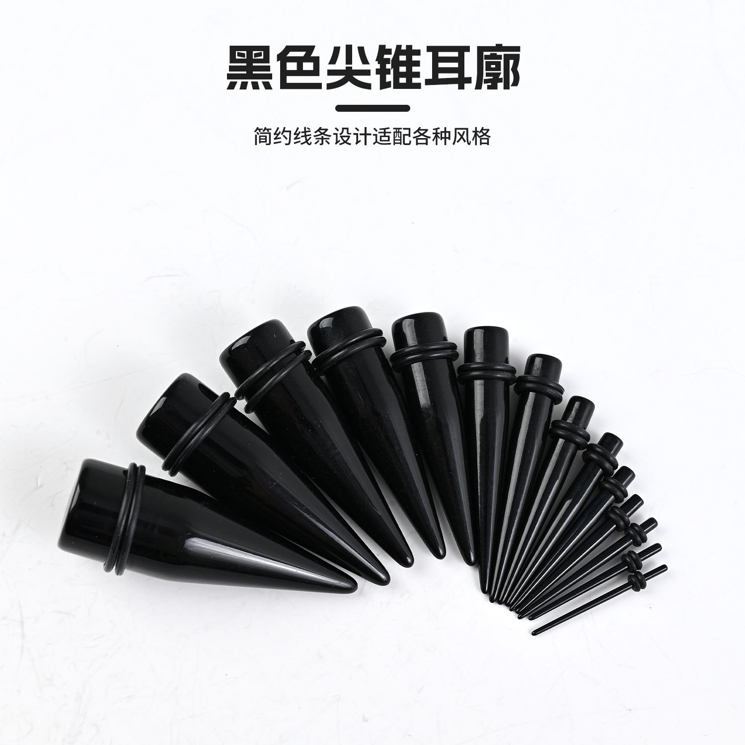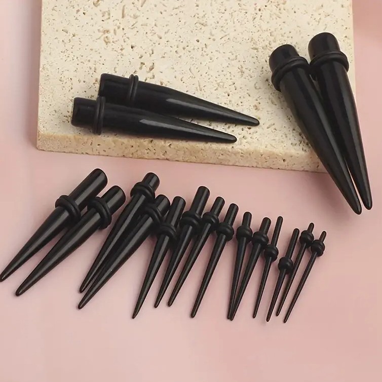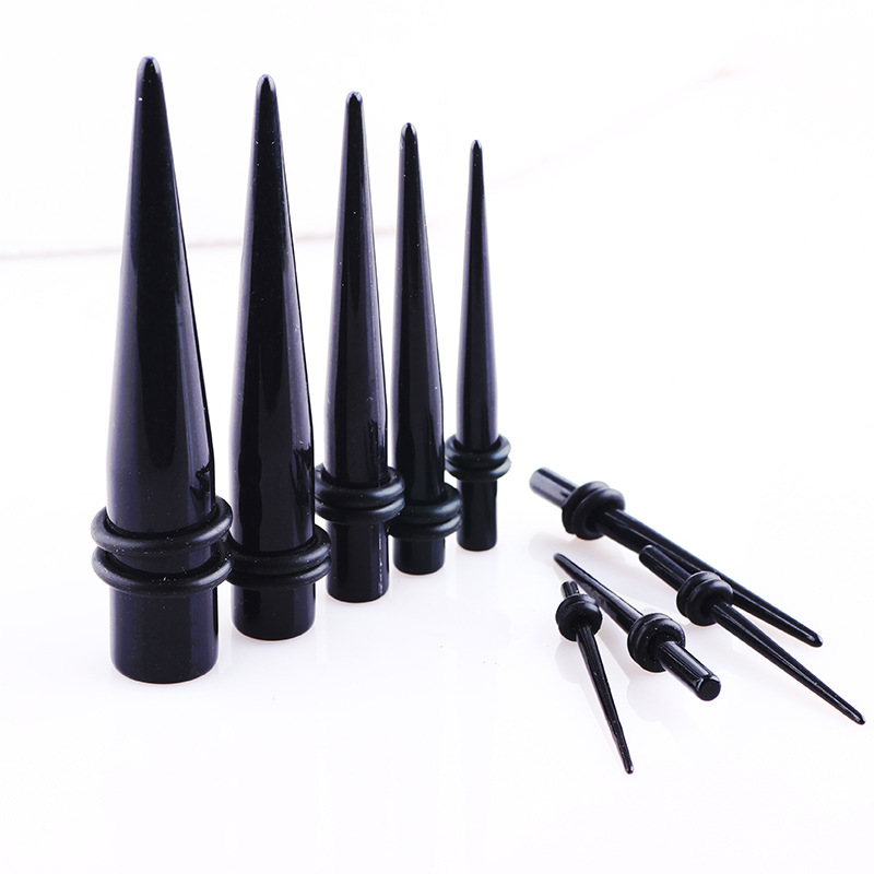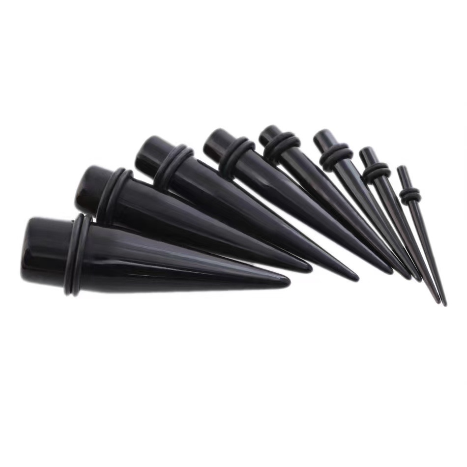 クロスボーダー黒色フルサイズ尖錐耳郭高品質アクリル穿刺1.6mm-25mm耳穴耳拡張