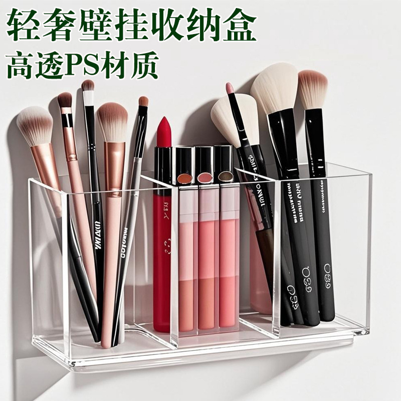 壁掛分格収納ケースデスクトップ透明化粧品化粧品ブラシ整理バケツ穴なしごみ棚