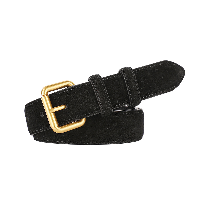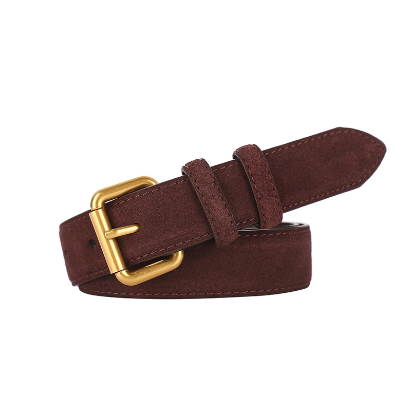 香港スタイルのレトロなベルト女性の装飾ファッションシンプルなハイエンド文学ベルベット本革ピンバックルスエードベルト女性のための卸売