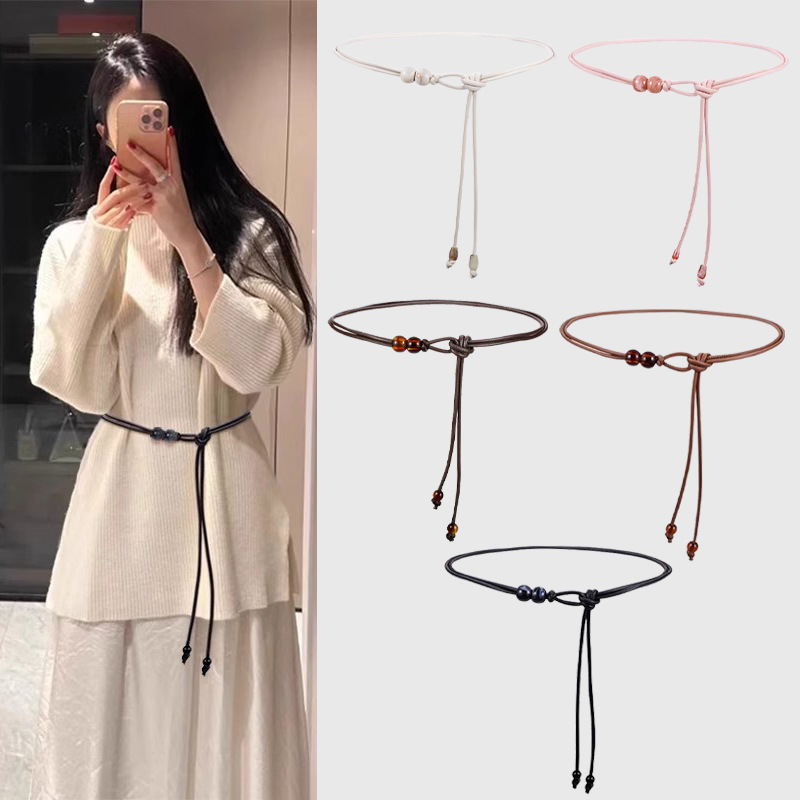 高級感のある細いベルトアクセサリー、女性用レザーロープウエストチェーン、スカート、セーター、コート、ダウンジャケットに合わせやすい黒の万能小ベルト
