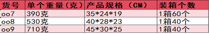 商品番号006【28*20.5*17】,商品番号007【35X24X19】,商品番号008【40X28X23】,商品番号009【45X30X25】